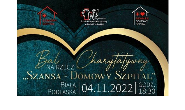 Po raz pierwszy Stowarzyszenie na rzecz Wspierania Zespołu Opieki Medycznej ,,Domowy Szpital’’ Wojewódzkiego Szpitala Specjalistycznego w Białej Podlaskiej „Szansa – Domowy Szpital” organizuje Bal Charytatywny, którego celem jest zebranie funduszy na wsparcie pacjentów Domowego Szpitala.