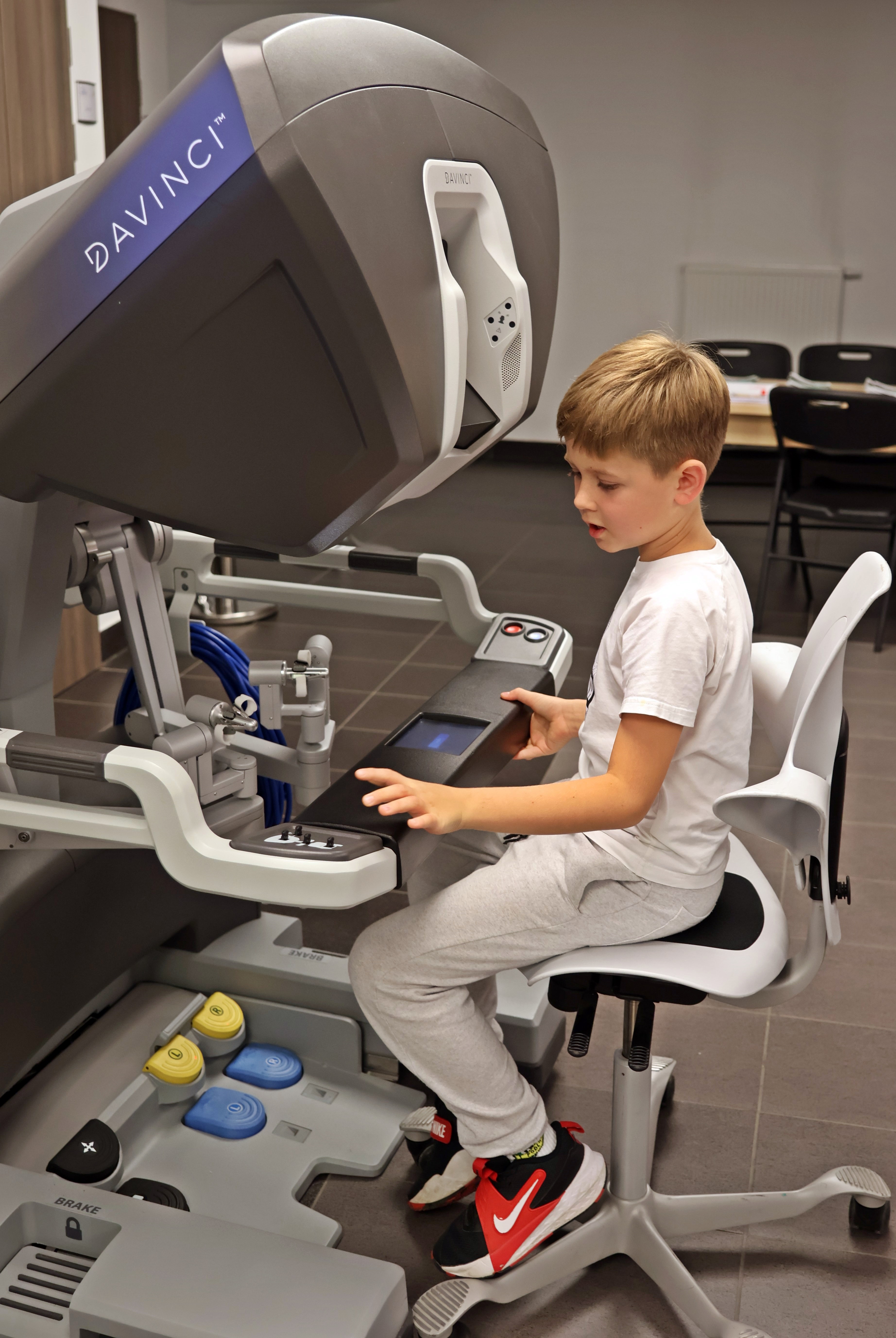 Po części wykładowej odbył się pokaz robota chirurgicznego da Vinci. Na holu przed aulą uczestnicy mogli z bliska zobaczyć system robotyczny wykorzystywany w bialskim szpitalu, poznać jego możliwości oraz samodzielnie usiąść za konsolą symulatora i spróbować swoich sił w wykonywaniu precyzyjnych ruchów narzędziami robota.