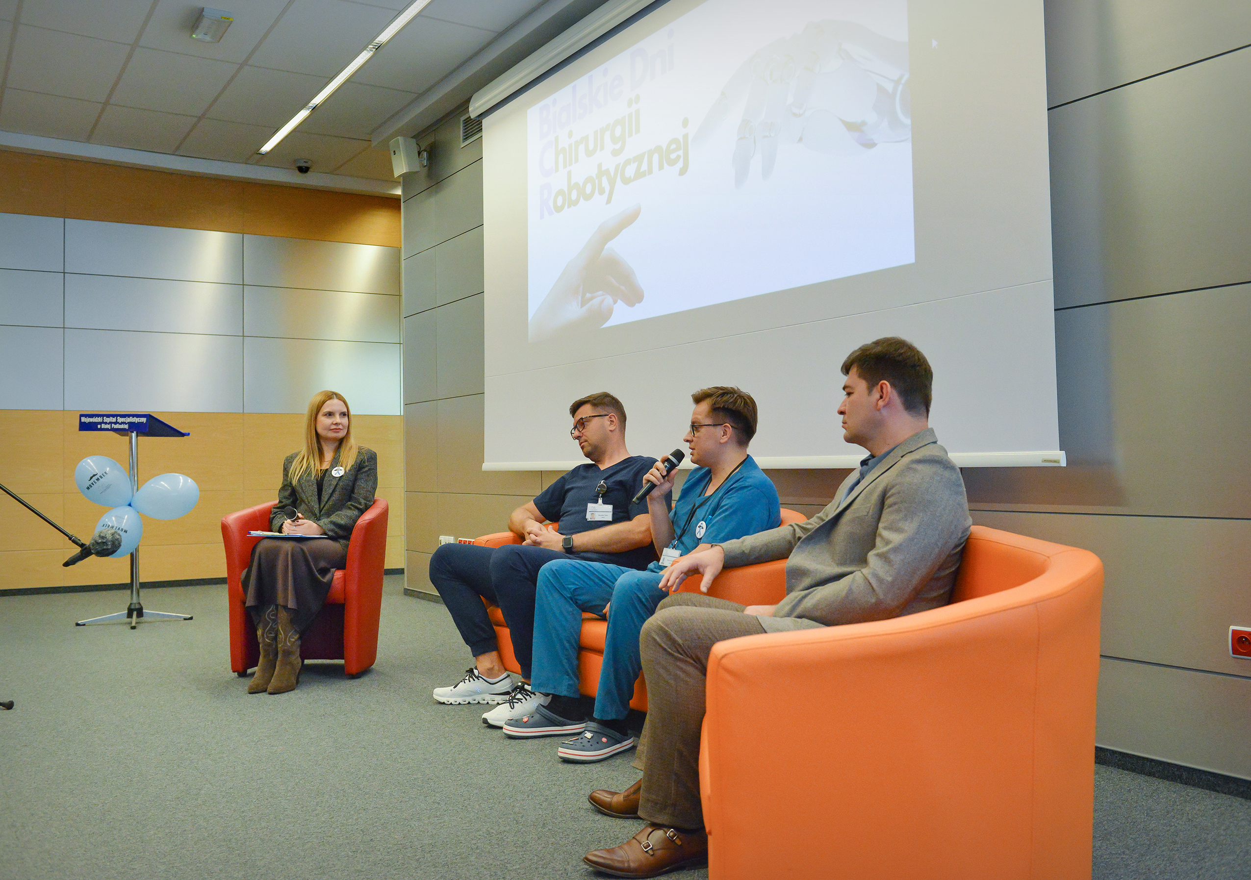 Następnie odbył się panel warsztatowy, którego gośćmi byli lekarze specjaliści, którzy na co dzień operują w bialskim szpitalu z wykorzystaniem robota: dr n. med. Bożydar Tylus – lekarz specjalista w dziedzinie ginekologii i położnictwa, Lekarz Kierujący Oddziałem Ginekologiczno-Położniczym, lek. Krzysztof Pękala – lekarz specjalista w dziedzinie urologii, Lekarz Kierujący Oddziałem Urologicznym, lek. Filip Rozpotyński – lekarz specjalista w dziedzinie chirurgii, pracujący w Oddziale Chirurgii Ogólnej.