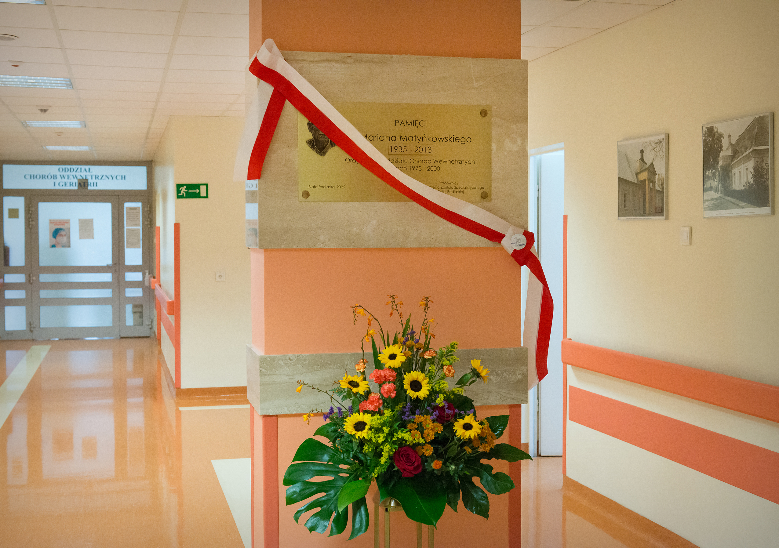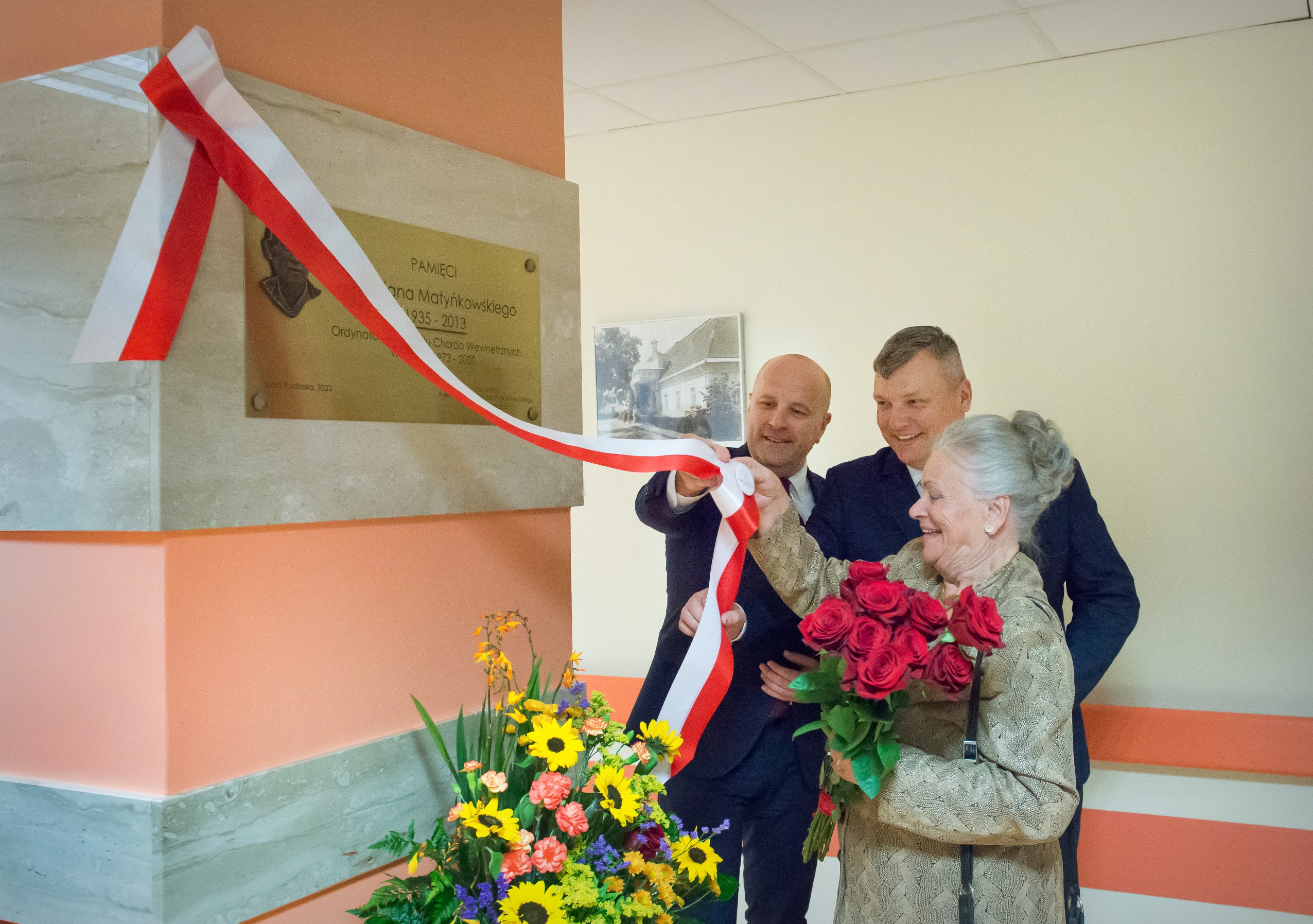 Następnie uczestnicy uroczystości udali się na Oddział Chorób Wewnętrznych, gdzie Małżonka Pana Doktora Mariana Matyńkowskiego - Józefa Matyńkowska, Wicewojewoda Lubelski - Robert Gmitruczuk oraz Dyrektor Szpitala – Adam Chodziński dokonali uroczystego odsłonięcia tablicy pamiątkowej lek. Mariana Matyńkowskiego.