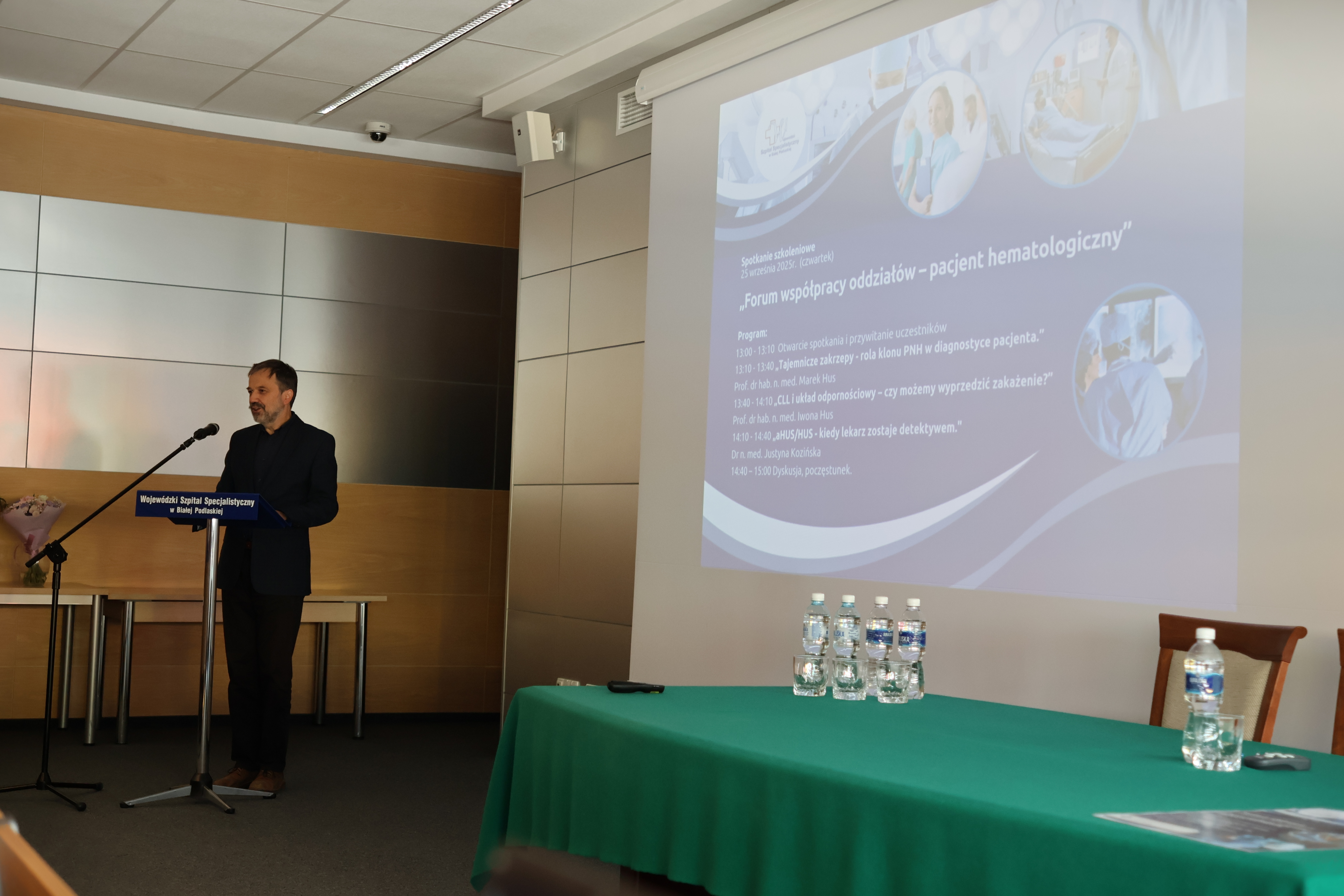 W dniu 25.09.2025r. w auli Centrum Dydaktyczno-Administracyjnego odbyło się ogólnoszpitalne spotkanie szkoleniowe pt.: „Forum współpracy oddziałów – pacjent hematologiczny”. Celem spotkania było zwrócenie szczególnej uwagi na chorego hematologicznego w innym oddziale. Pomysłodawczynią szkolenia była lek. Magdalena Partyka, a do wygłoszenia wykładów zaproszeni zostali czołowi eksperci w dziedzinie hematologii.