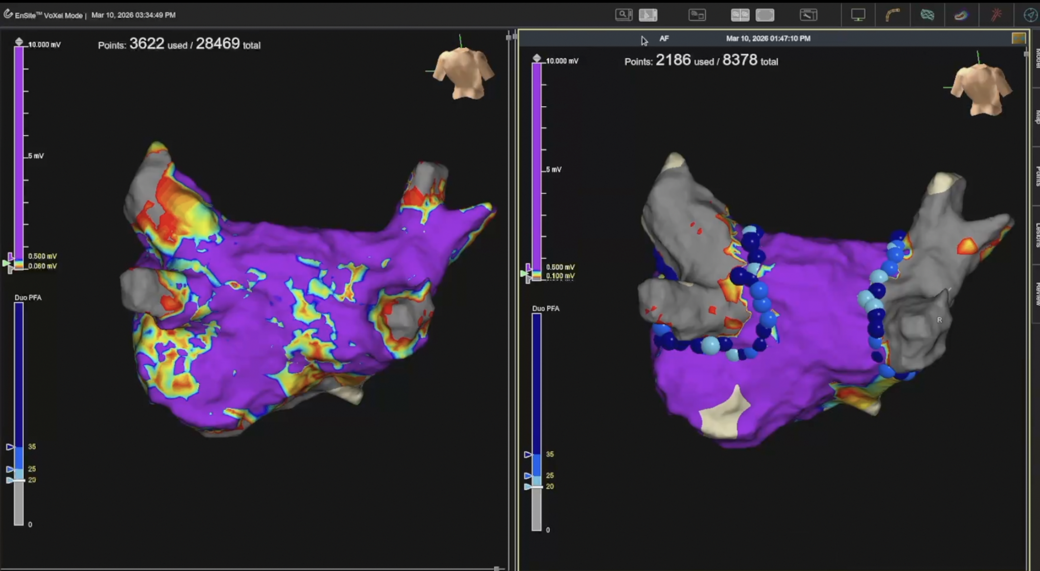 Cewnik TactiFlex Duo to jedno z najnowszych narzędzi dostępnych w nowoczesnej elektrofizjologii interwencyjnej. W rękach doświadczonych elektrofizjologów umożliwia wykonywanie zabiegów ablacji z wykorzystaniem najnowocześniejszej metody elektroporacji (PFA – Pulsed Field Ablation), a w razie potrzeby także zastosowanie energii prądu o częstotliwości radiowej (RF) podczas tej samej procedury. Takie połączenie technologii pozwala lekarzom na bardziej elastyczne dostosowanie strategii leczenia do rodzaju arytmii oraz może istotnie zmniejszyć konieczność wykonywania ponownych zabiegów ablacji u wielu pacjentów z arytmiami przedsionkowymi i komorowymi.