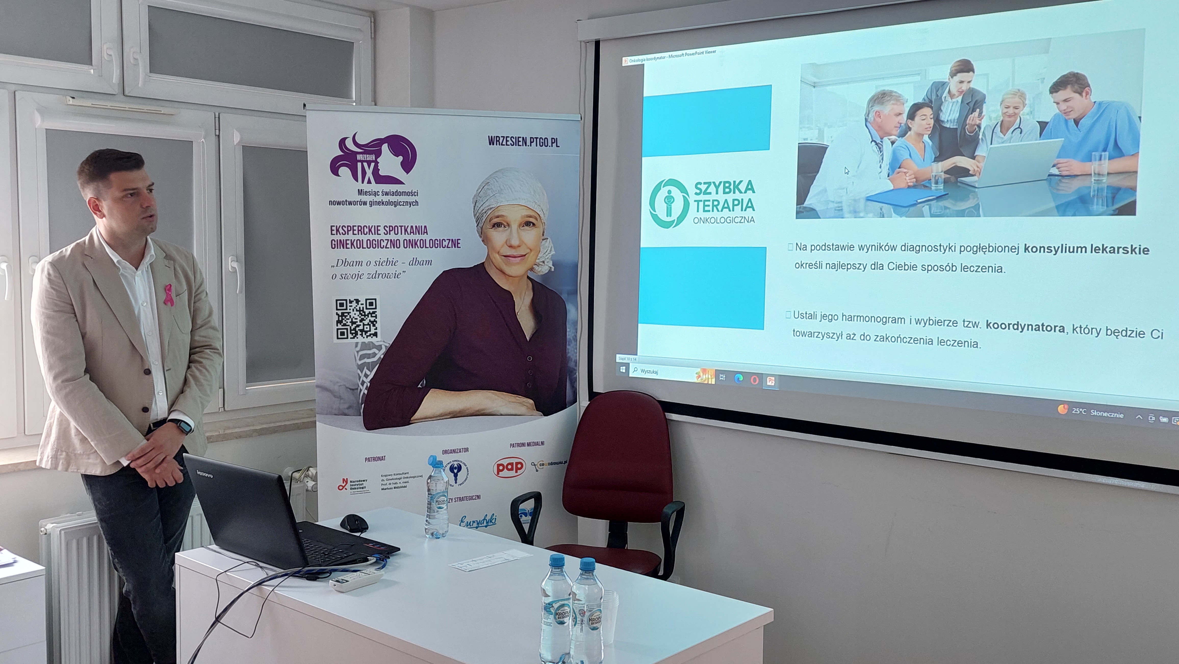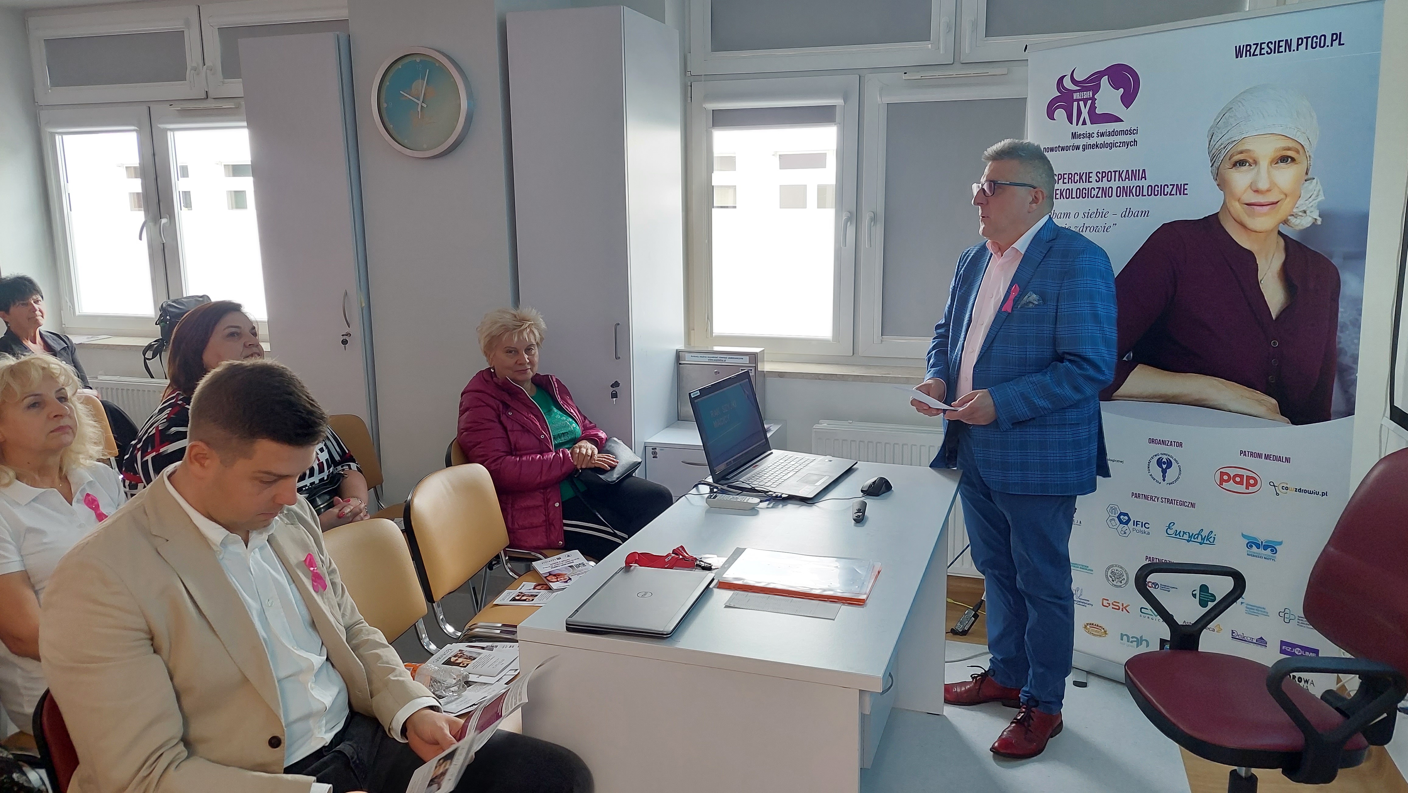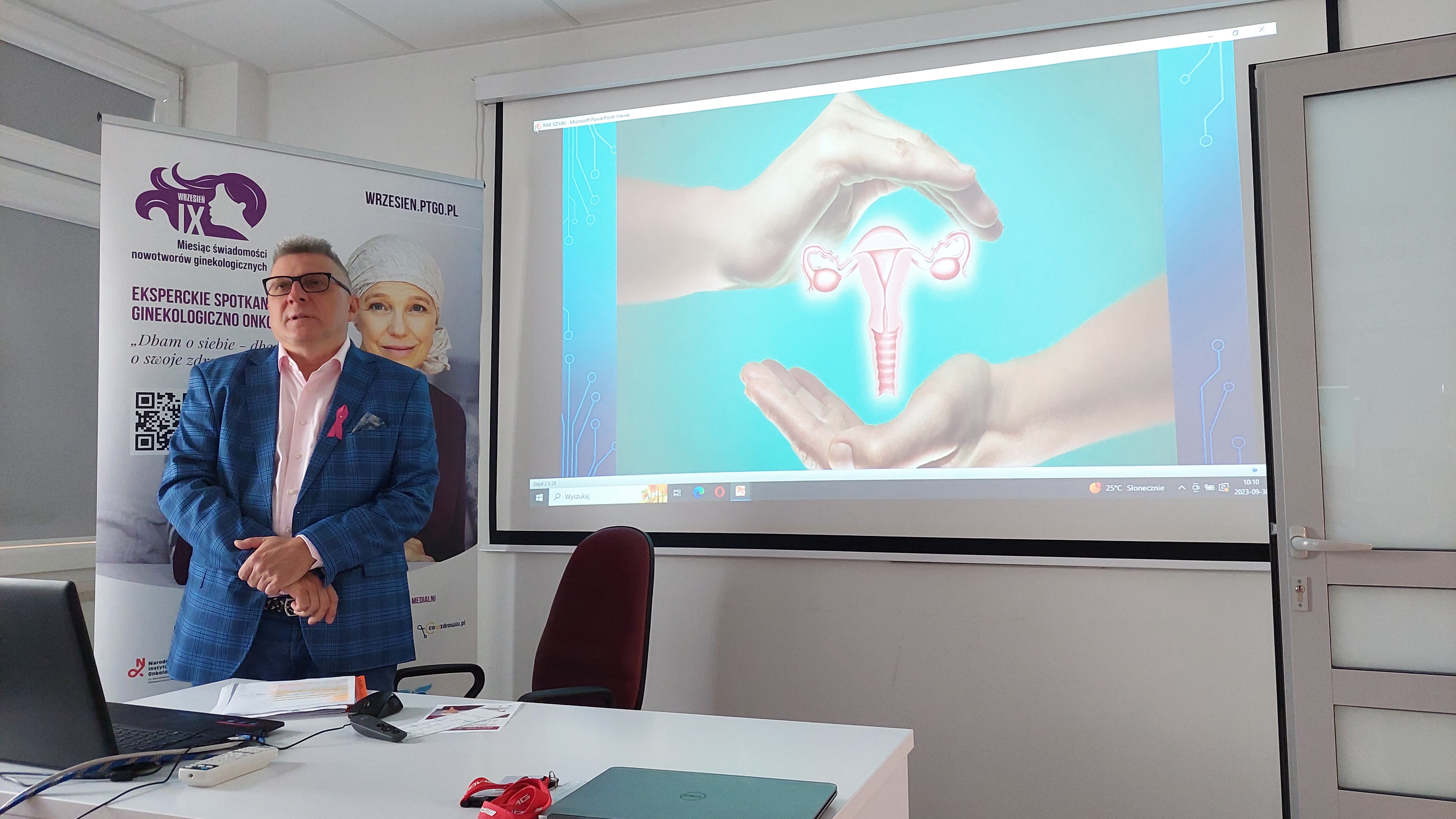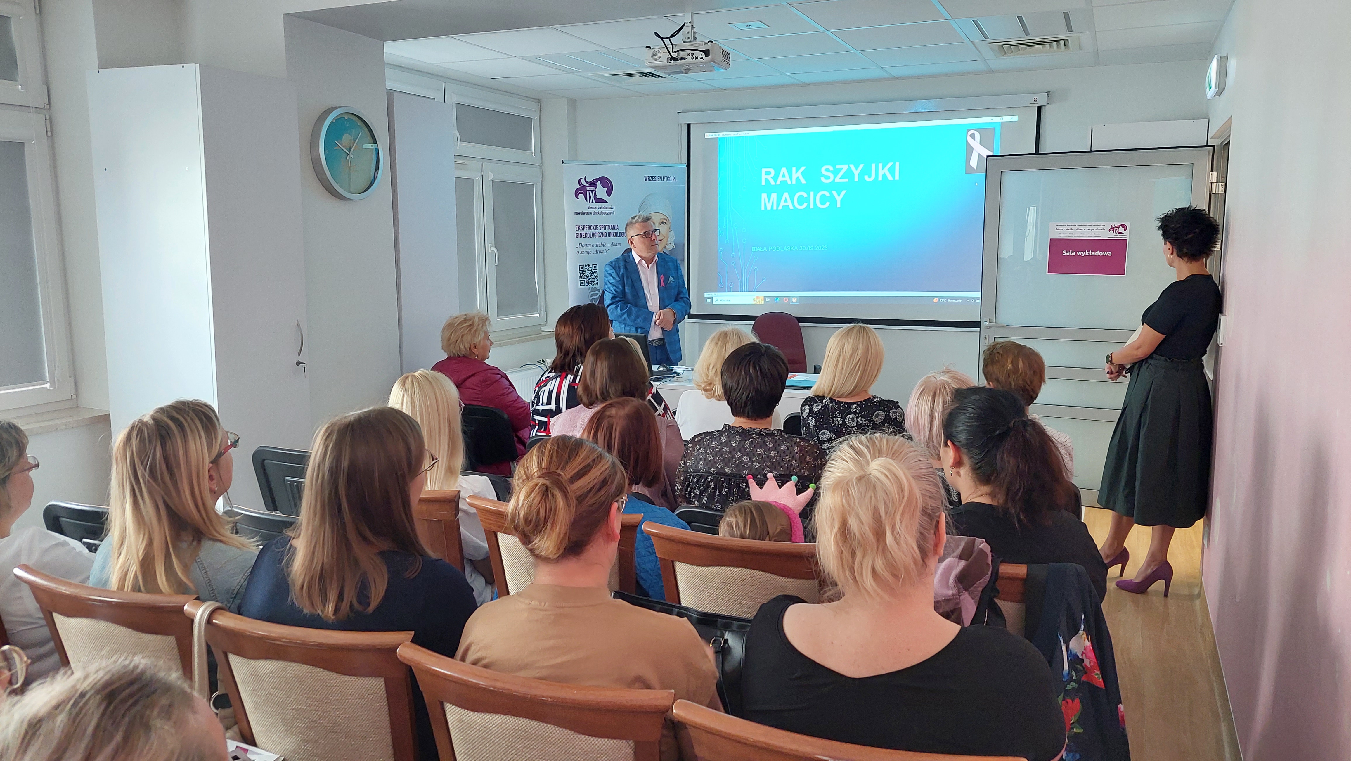 Spotkanie rozpoczął lek. A. Tomczewski, który zaprezentował wystąpienie pt. „Siła profilaktyki”, podczas którego podjął temat zapobiegania nowotworom ginekologicznym z naciskiem na profilaktykę pierwotną i wtórną w raku szyjki macicy.