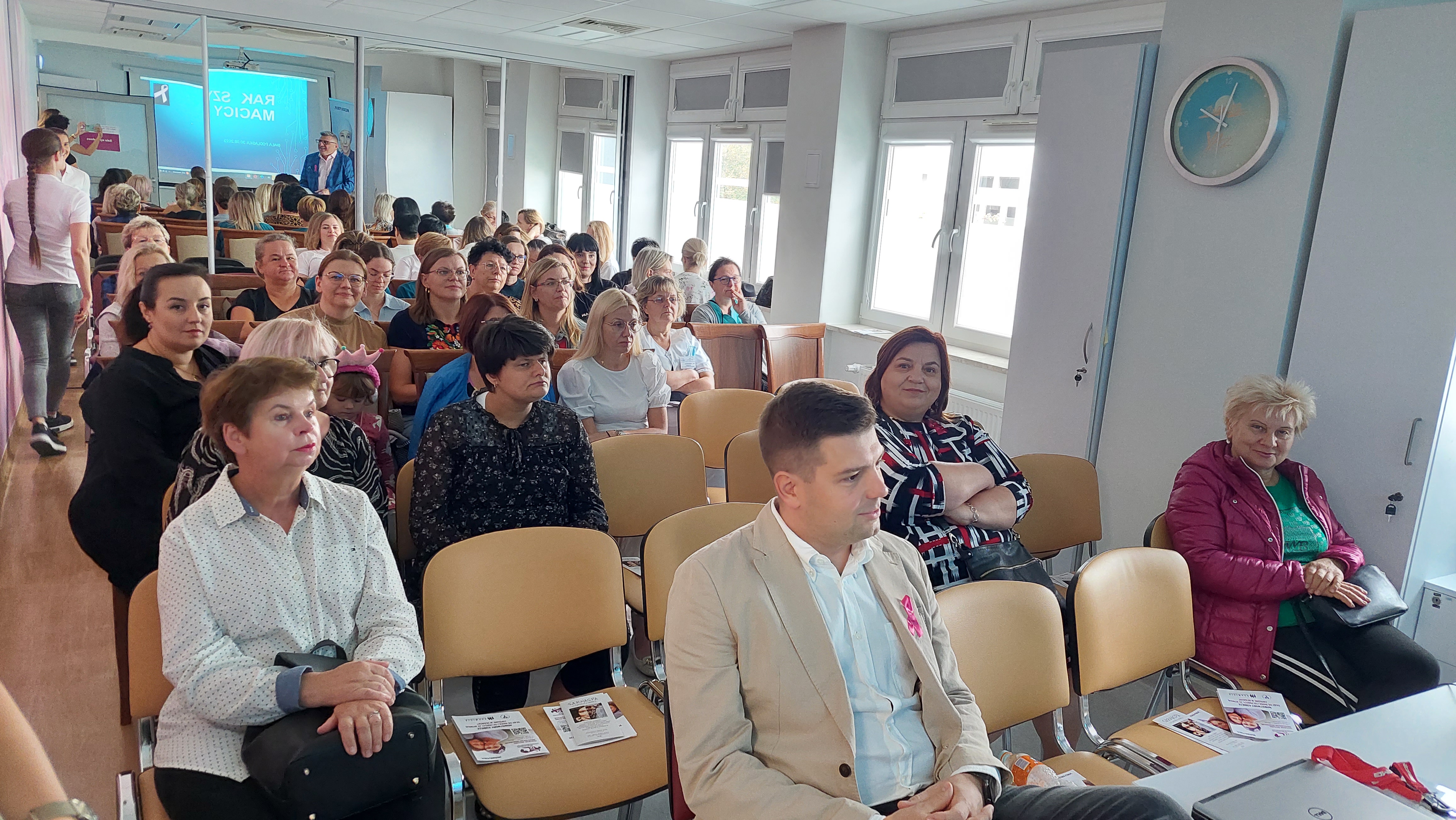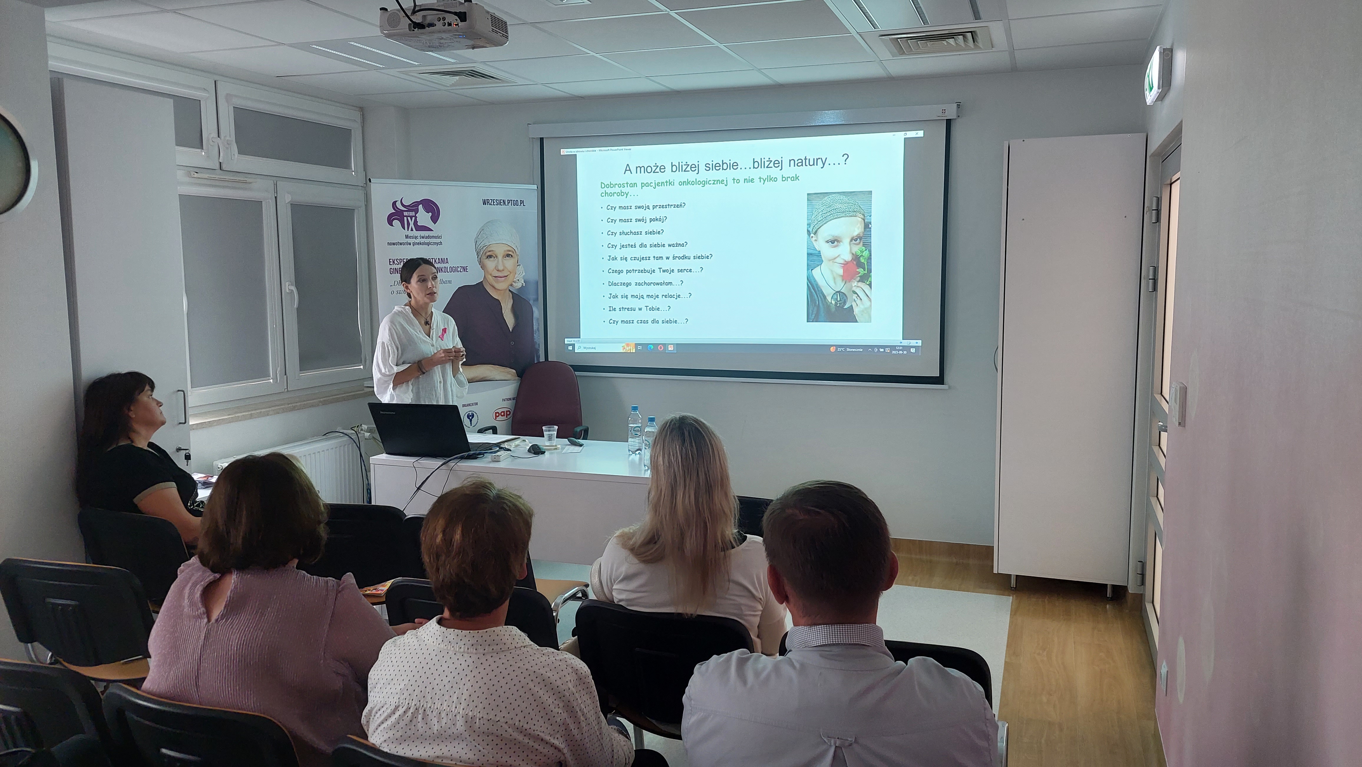 Kolejnym elementem było wystąpienie Pań Doktor z Oddziału Onkologii Klinicznej naszego szpitala - dr n. med. M. Pawłowicz i lek. E. Jankowskiej, które podjęły się prezentacji tematu: „Ja jestem ważna – dbanie o siebie po chorobie nowotworowej”. Mówiły m.in. o współpracy z lekarzami pierwszego kontaktu w zakresie diagnostyki przednowotworowej i follow-up po zakończeniu leczenia onkologicznego.