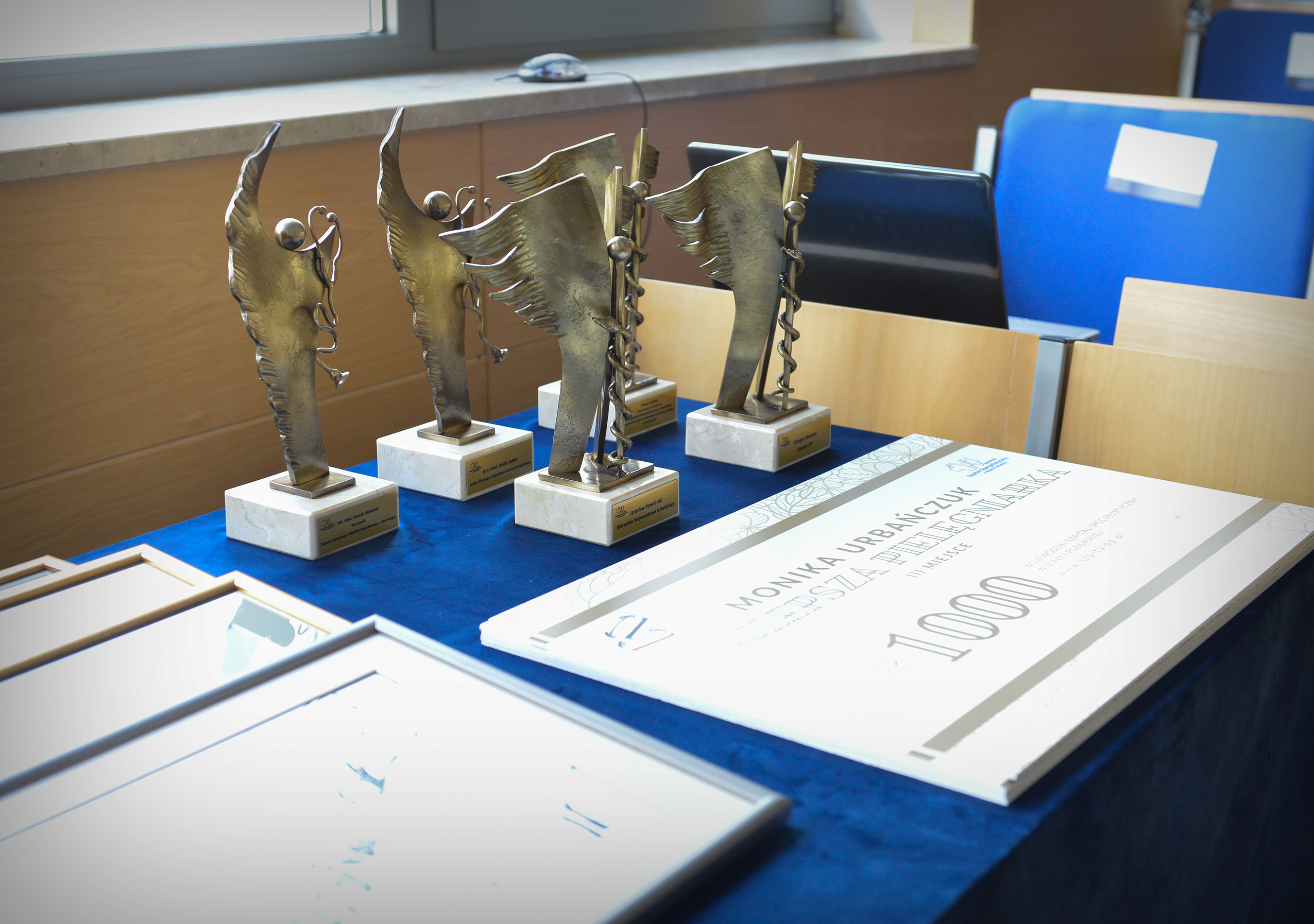 Po krótkiej części wykładowej prezentującej w sposób szczegółowy wagę i doniosłość uroczystości, nastąpiło wręczenie przez Pana Dyrektora Artura Kozioła okolicznościowych statuetek. Statuetki otrzymali: