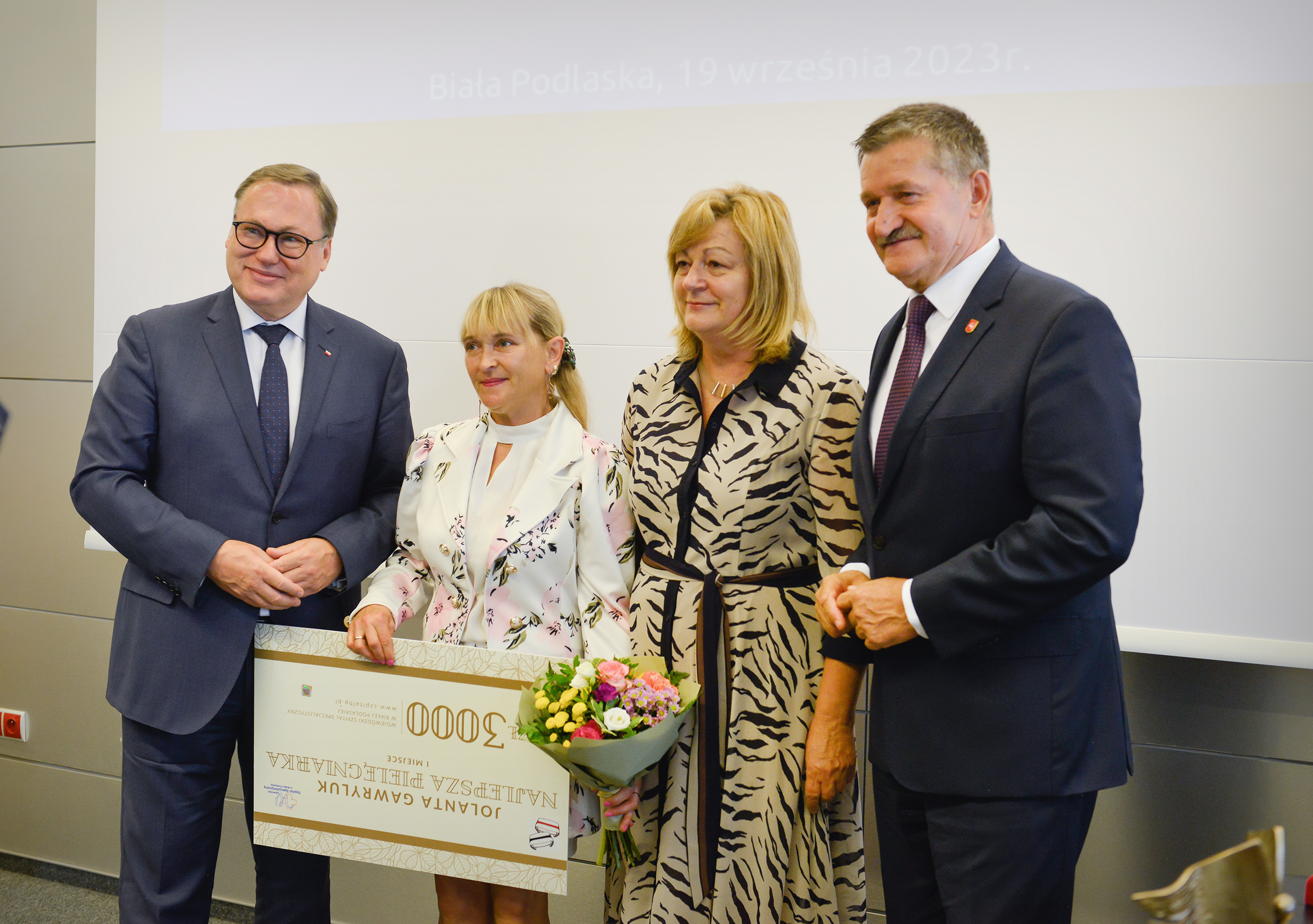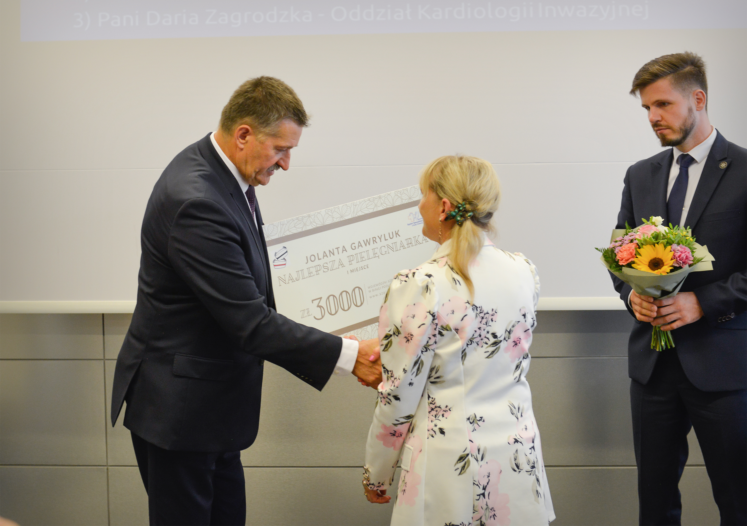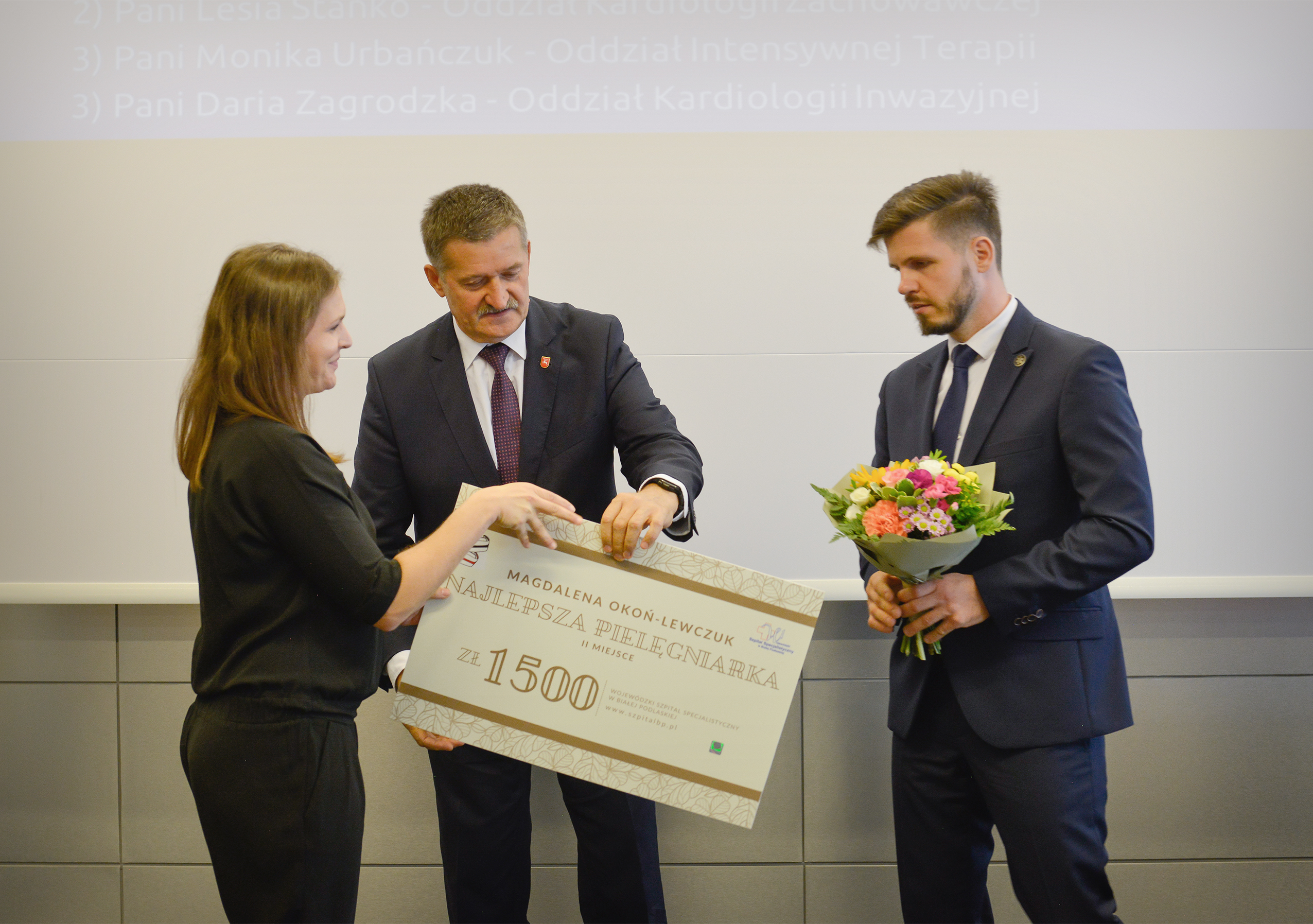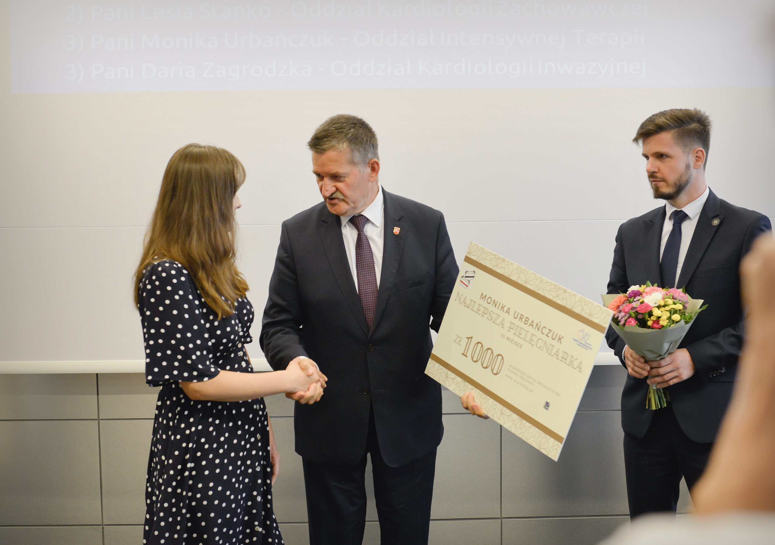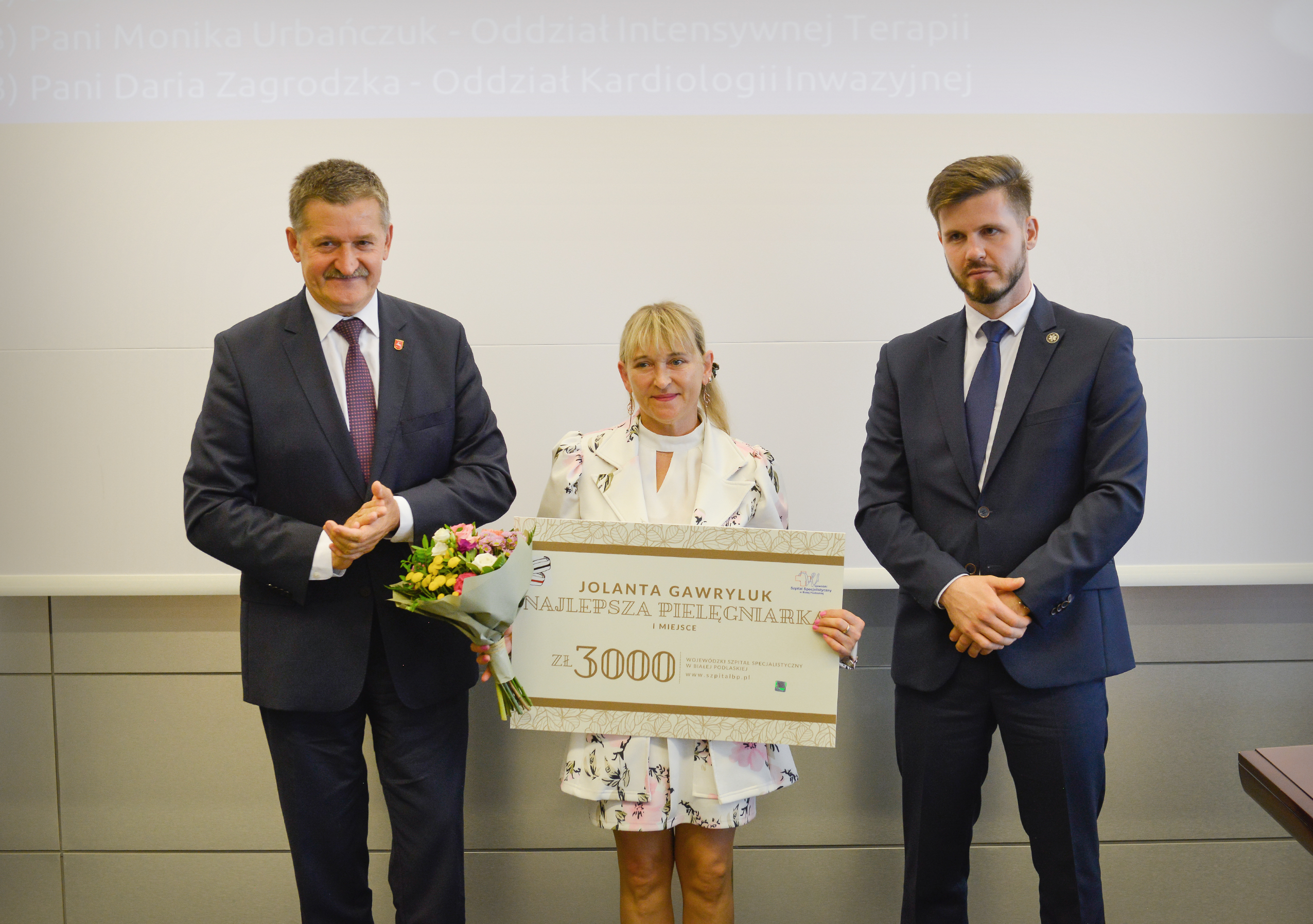 Na koniec nastąpiło rozstrzygnięcie konkursu na Najlepszą Pielęgniarkę/Położną Wojewódzkiego Szpitala Specjalistycznego w Białej Podlaskiej 2023 roku. Uroczystego wręczenia nagród dokonał Pan Zdzisław Szwed, członek Zarządu Województwa Lubelskiego oraz Pan Dyrektor Artur Kozioł: