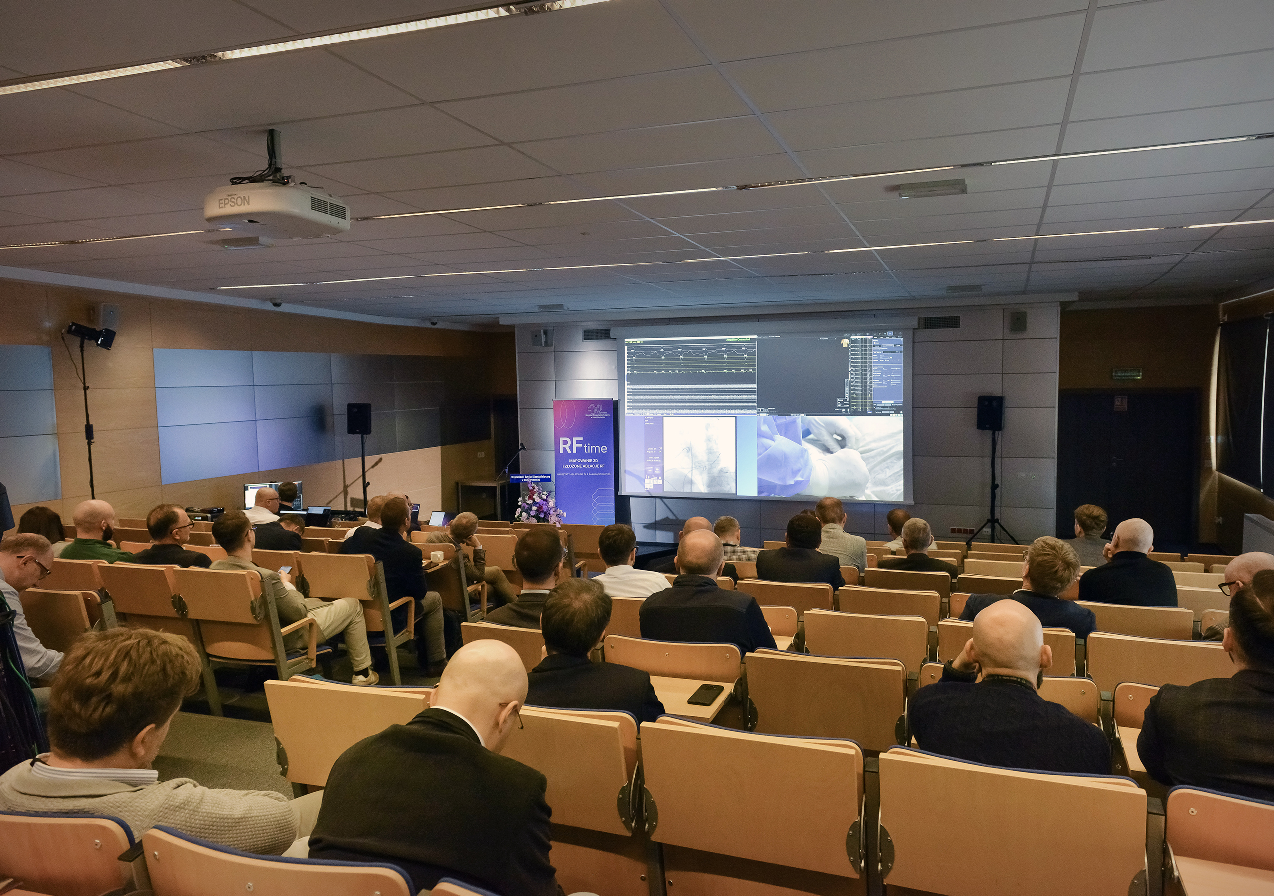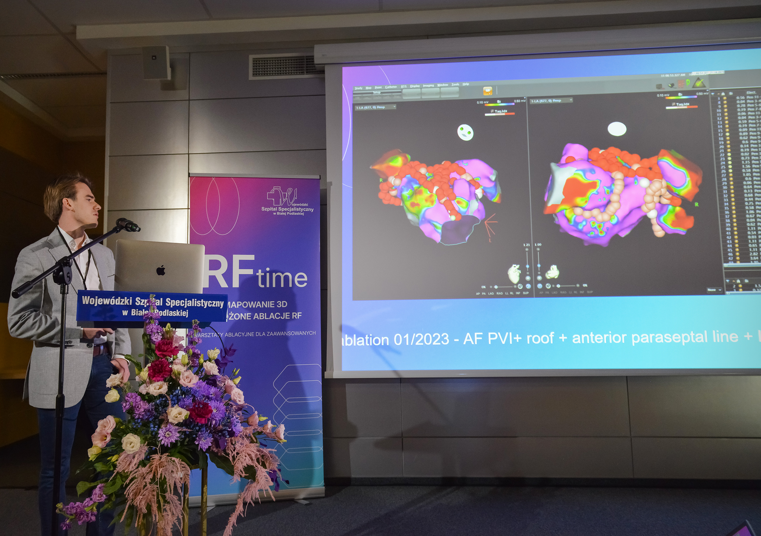 W ciągu dwóch dni warsztatów (23-24 października) uczestnicy mogli obserwować pięć złożonych zabiegów ablacji z Pracowni Elektrofizjologii Szpitala w Białej Podlaskiej i jeden, transmitowanych na żywo do sali wykładowej, z Pracowni Elektrofizjologii Uniwersyteckiego Szpitala w Barcelonie. Zabiegi były wykonywane zarówno z wykorzystaniem systemu PFA drugiej generacji, jak i cewnikami RF z zastosowaniem nowego wskaźnika Ablation Mark Index.