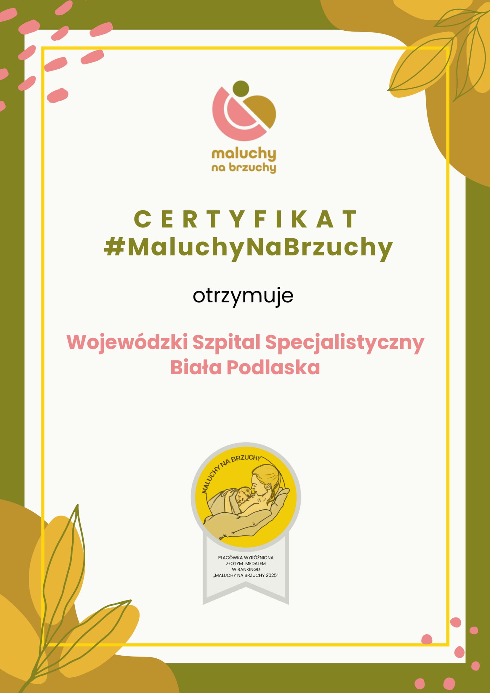 Mamy zaszczyt poinformować, iż na podstawie raportu z ankiet „Głos Matek” Fundacji Rodzić po Ludzku Wojewódzki Szpital Specjalistyczny w Białej Podlaskiej otrzymał złoty Medal w Rankingu „Maluchy na Brzuchy” za wspieranie dwugodzinnego