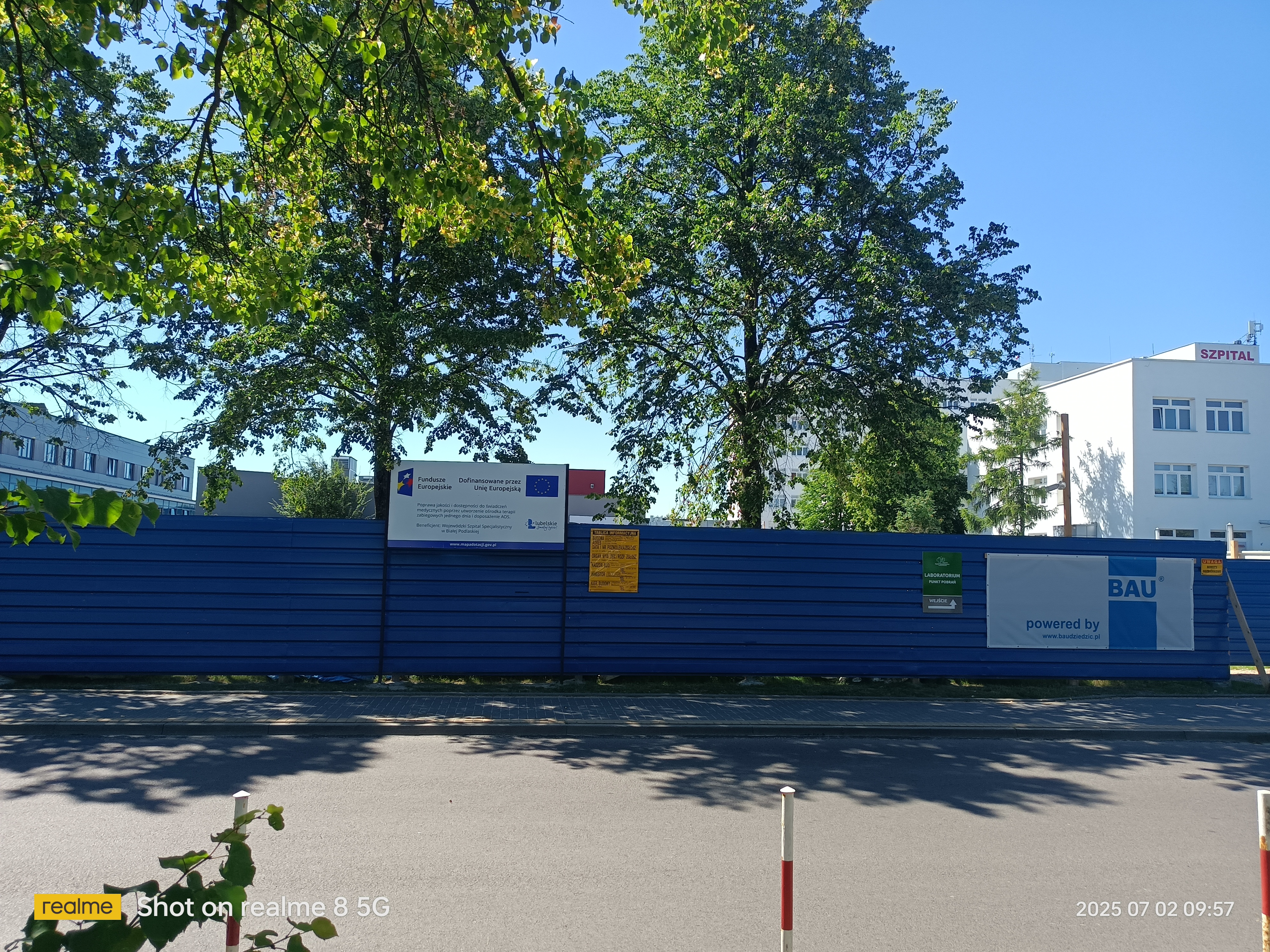 W ramach robót budowlanych zrealizowano w całości rozbiórkę budynku Zakładu Patomorfologii, w miejscu którego będzie zlokalizowany nowy Wielospecjalistyczny Ośrodek Terapii Jednodniowych. Po zakończeniu rozbiórki byłego budynku Patomorfologii realizowane są roboty ziemne i fundamentowe oraz inne roboty konstrukcyjne na poziomie "-1" (kondygnacja podziemna) nowego budynku.