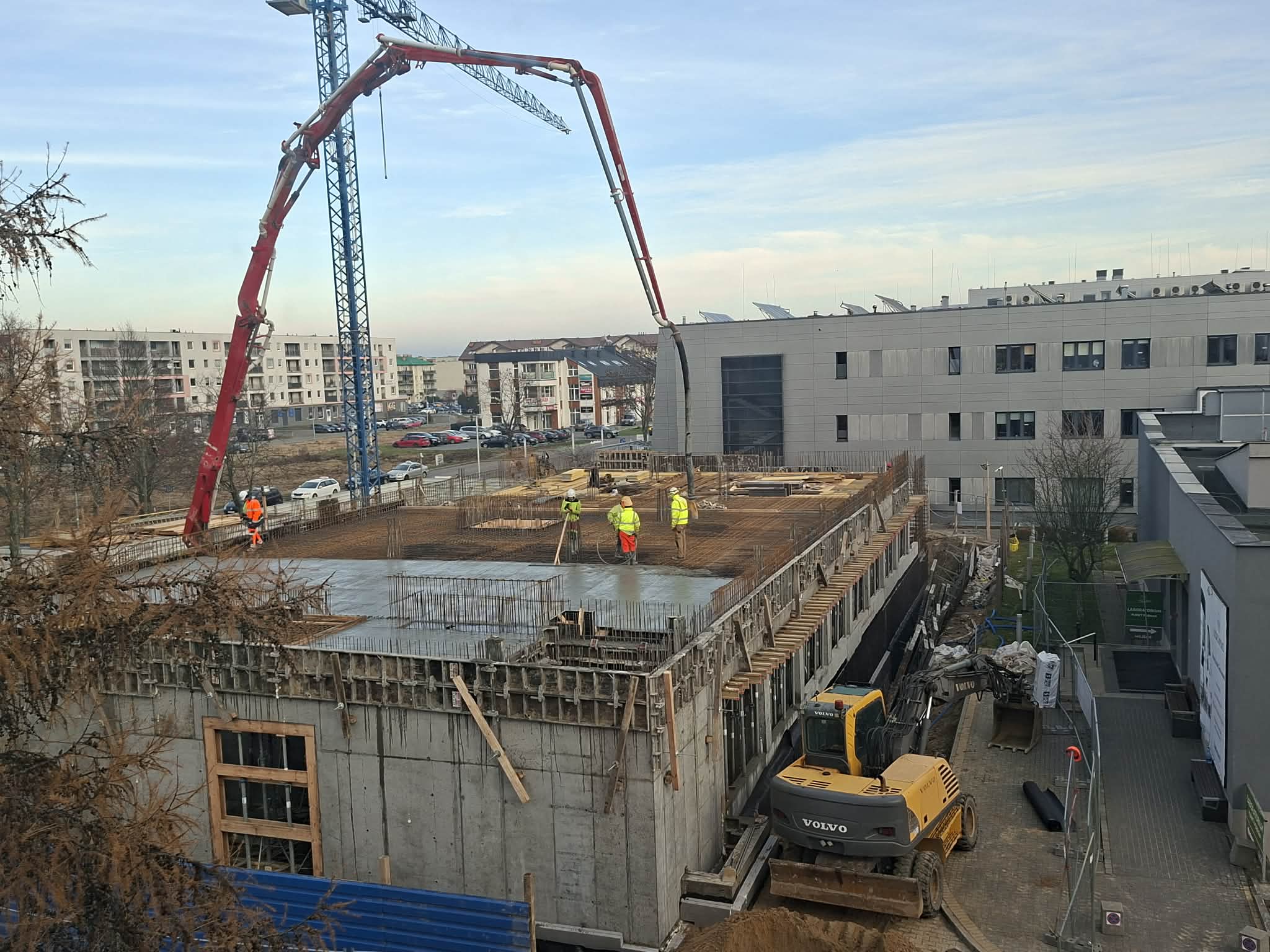 W ramach robót budowlanych zrealizowano w całości rozbiórkę budynku Zakładu Patomorfologii, w miejscu którego będzie zlokalizowany nowy Wielospecjalistyczny Ośrodek Terapii Jednodniowych. Po zakończeniu rozbiórki byłego budynku Patomorfologii realizowane są roboty budowlane konstrukcyjne na poziomie "-1" (kondygnacja podziemna) oraz poziomach „0” i „+1”, tj. parterze i 1 piętrze nowego budynku.