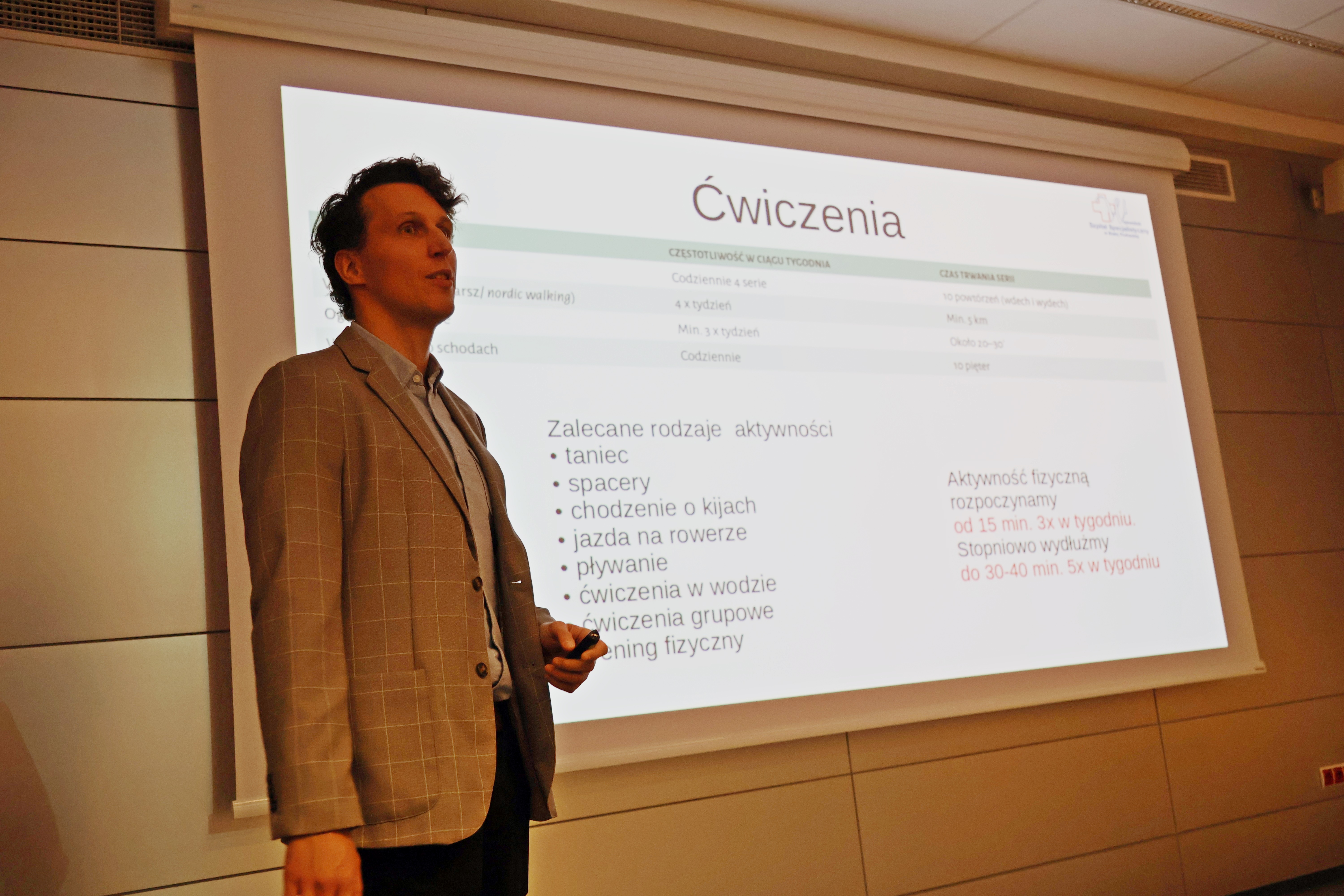 Następnie lek. Jędrzej Jurewicz zaprezentował temat prehabilitacji, czyli przygotowania pacjenta do zabiegu. Podczas wykładu omówił, jak właściwe przygotowanie wpływa na przebieg operacji, zmniejszenie ryzyka powikłań oraz szybszy powrót do zdrowia.