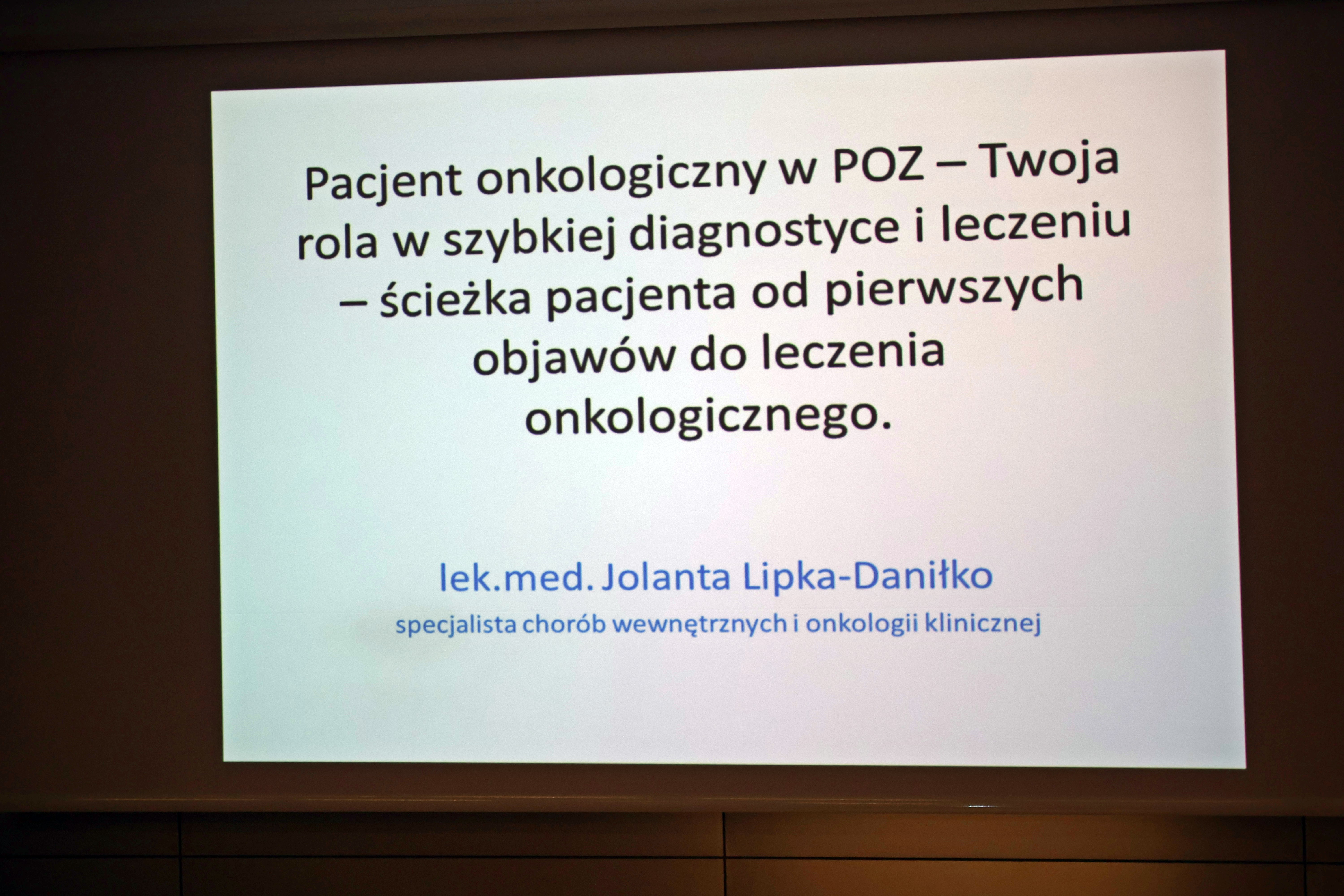 Uczestnicy wysłuchali również wykładu lek. Jolanty Lipki-Daniłko pt. „Pacjent onkologiczny w POZ – Twoja rola w szybkiej diagnostyce i leczeniu”. Prelegentka zwróciła uwagę na to, że to właśnie lekarz rodzinny często jako pierwszy obserwuje niepokojące objawy i decyduje o wdrożeniu ścieżki onkologicznej.