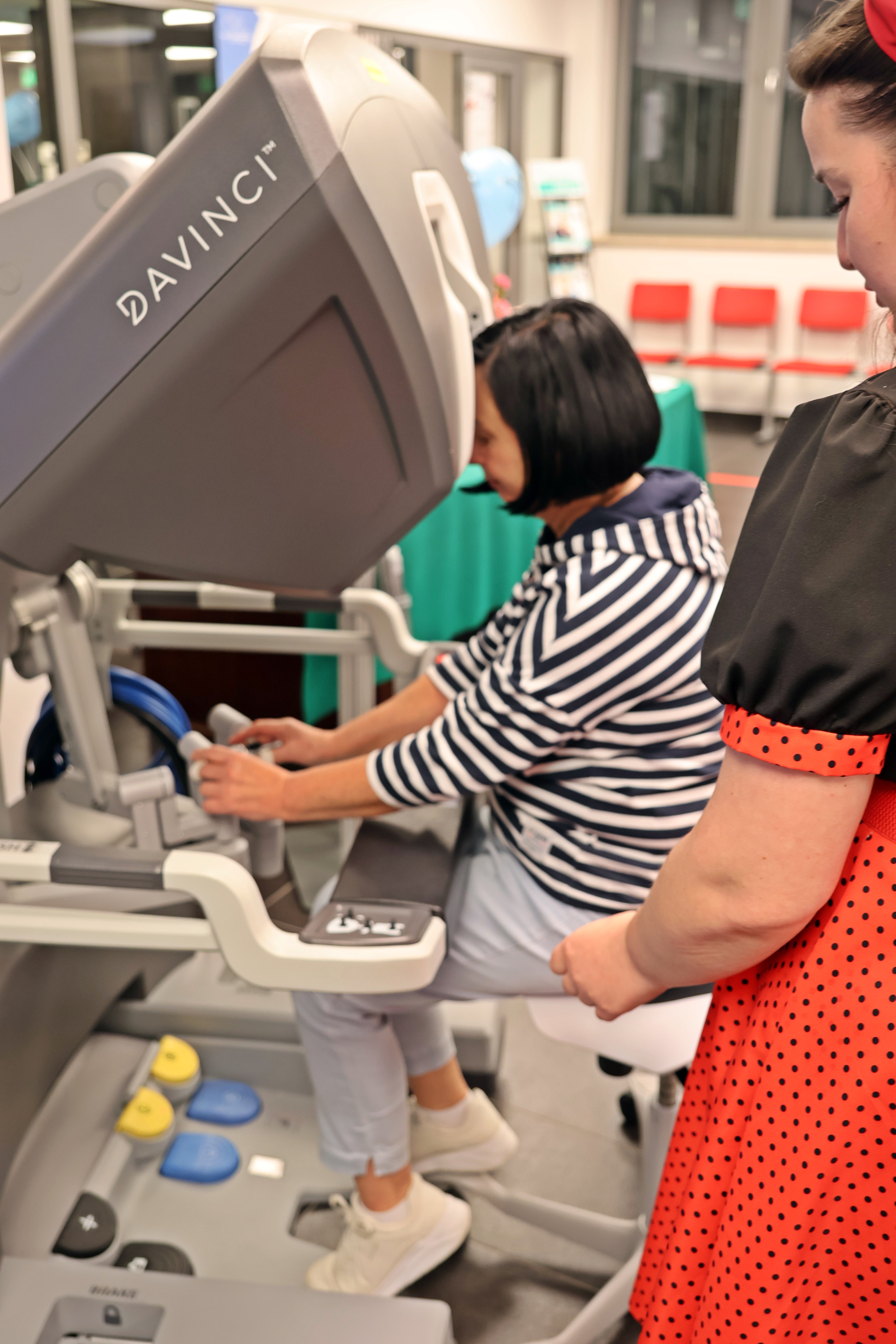 Po części wykładowej odbył się pokaz robota chirurgicznego da Vinci. Na holu przed aulą uczestnicy mogli z bliska zobaczyć system robotyczny wykorzystywany w bialskim szpitalu, poznać jego możliwości oraz samodzielnie usiąść za konsolą symulatora i spróbować swoich sił w wykonywaniu precyzyjnych ruchów narzędziami robota.
