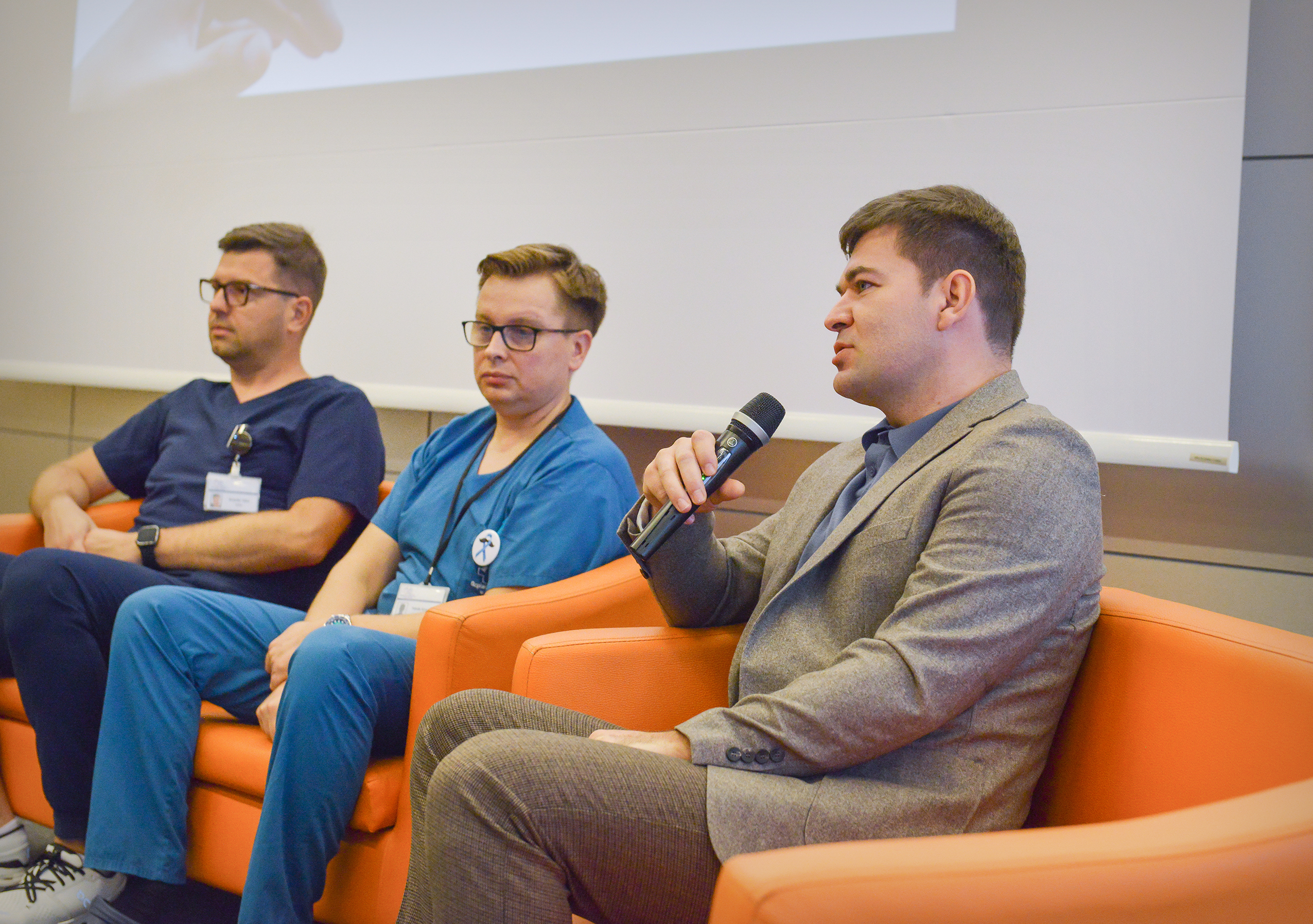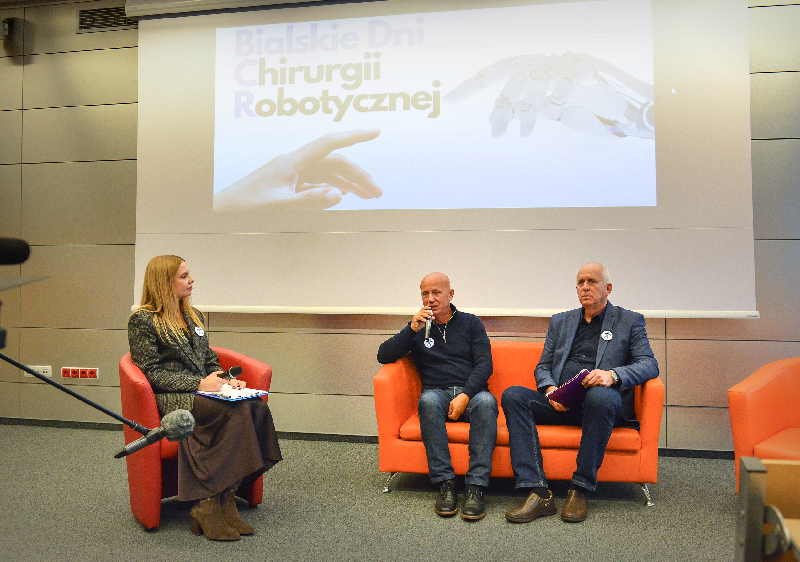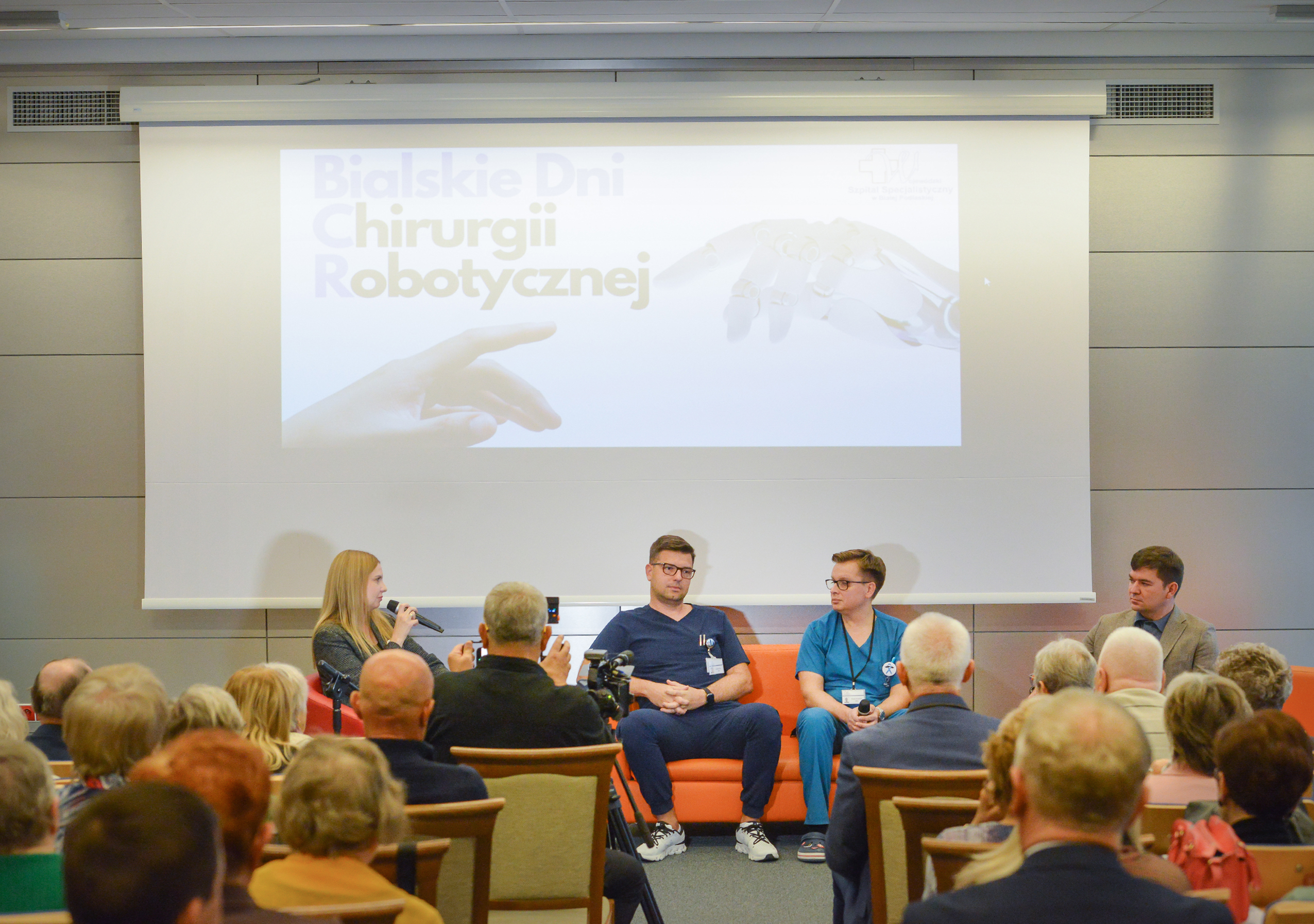 Następnie odbył się panel warsztatowy, którego gośćmi byli lekarze specjaliści, którzy na co dzień operują w bialskim szpitalu z wykorzystaniem robota: dr n. med. Bożydar Tylus – lekarz specjalista w dziedzinie ginekologii i położnictwa, Lekarz Kierujący Oddziałem Ginekologiczno-Położniczym, lek. Krzysztof Pękala – lekarz specjalista w dziedzinie urologii, Lekarz Kierujący Oddziałem Urologicznym, lek. Filip Rozpotyński – lekarz specjalista w dziedzinie chirurgii, pracujący w Oddziale Chirurgii Ogólnej.