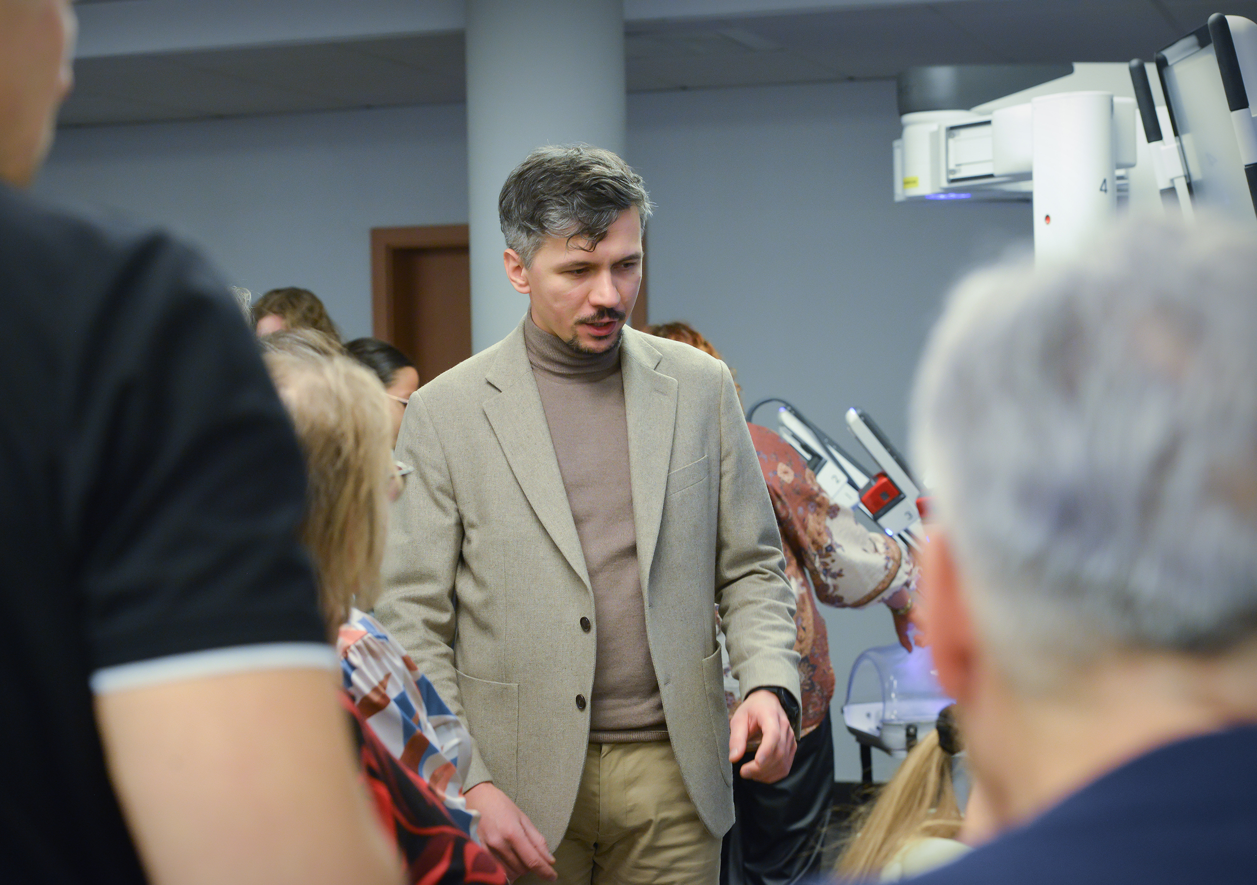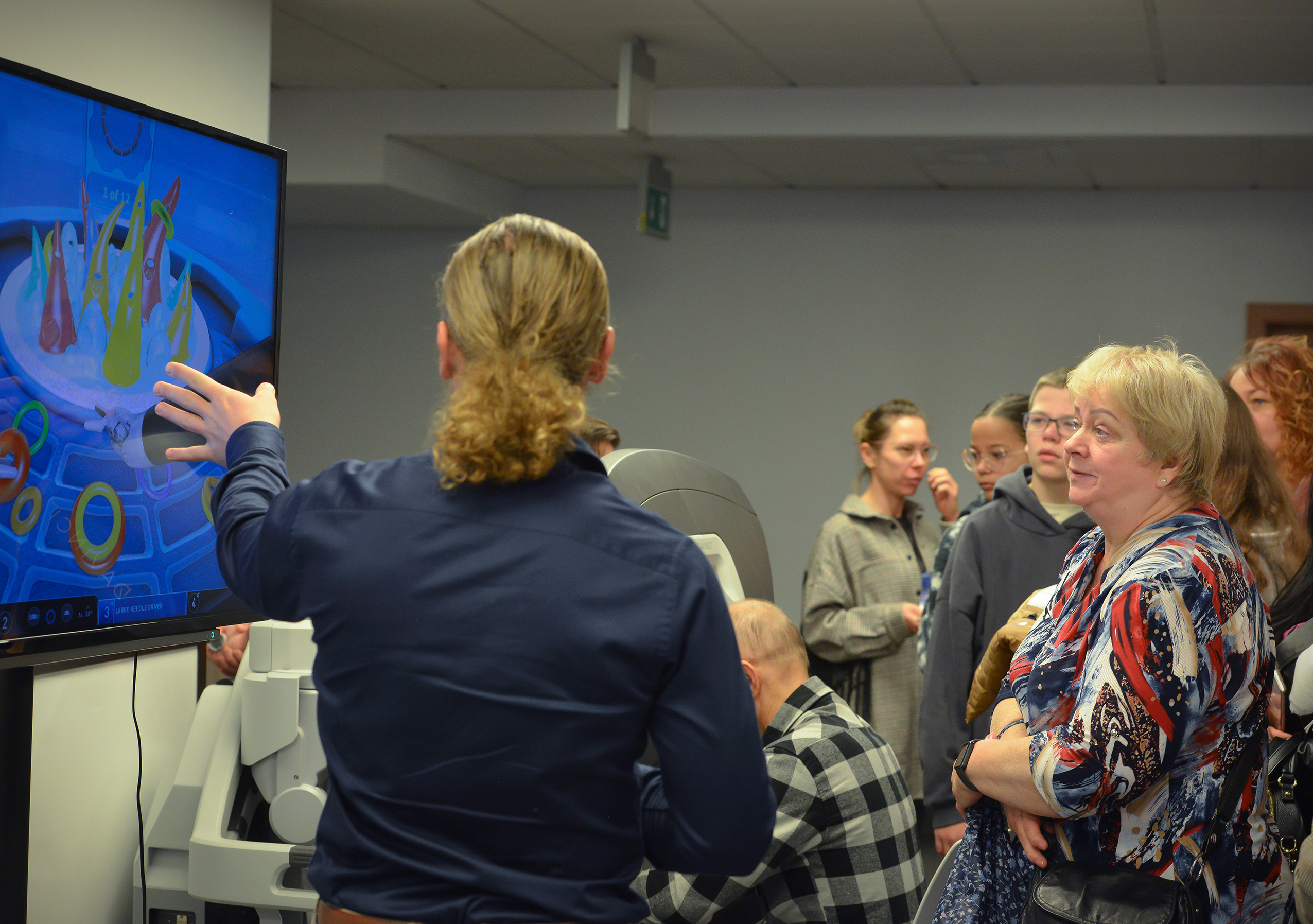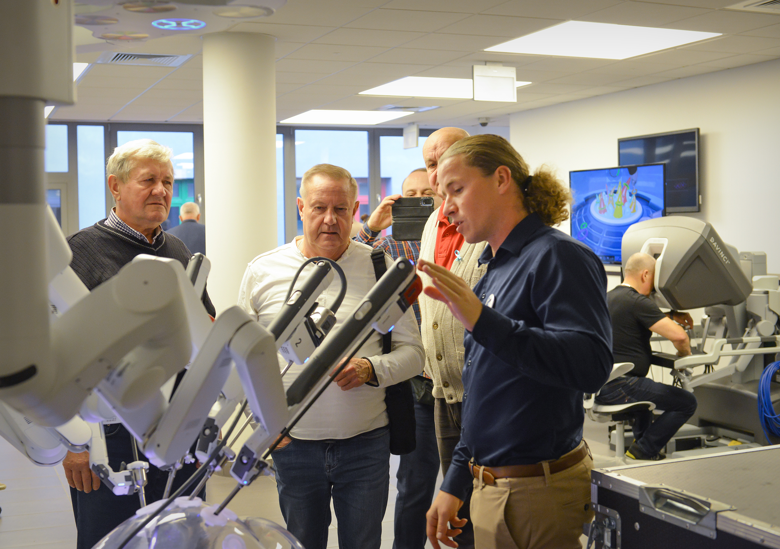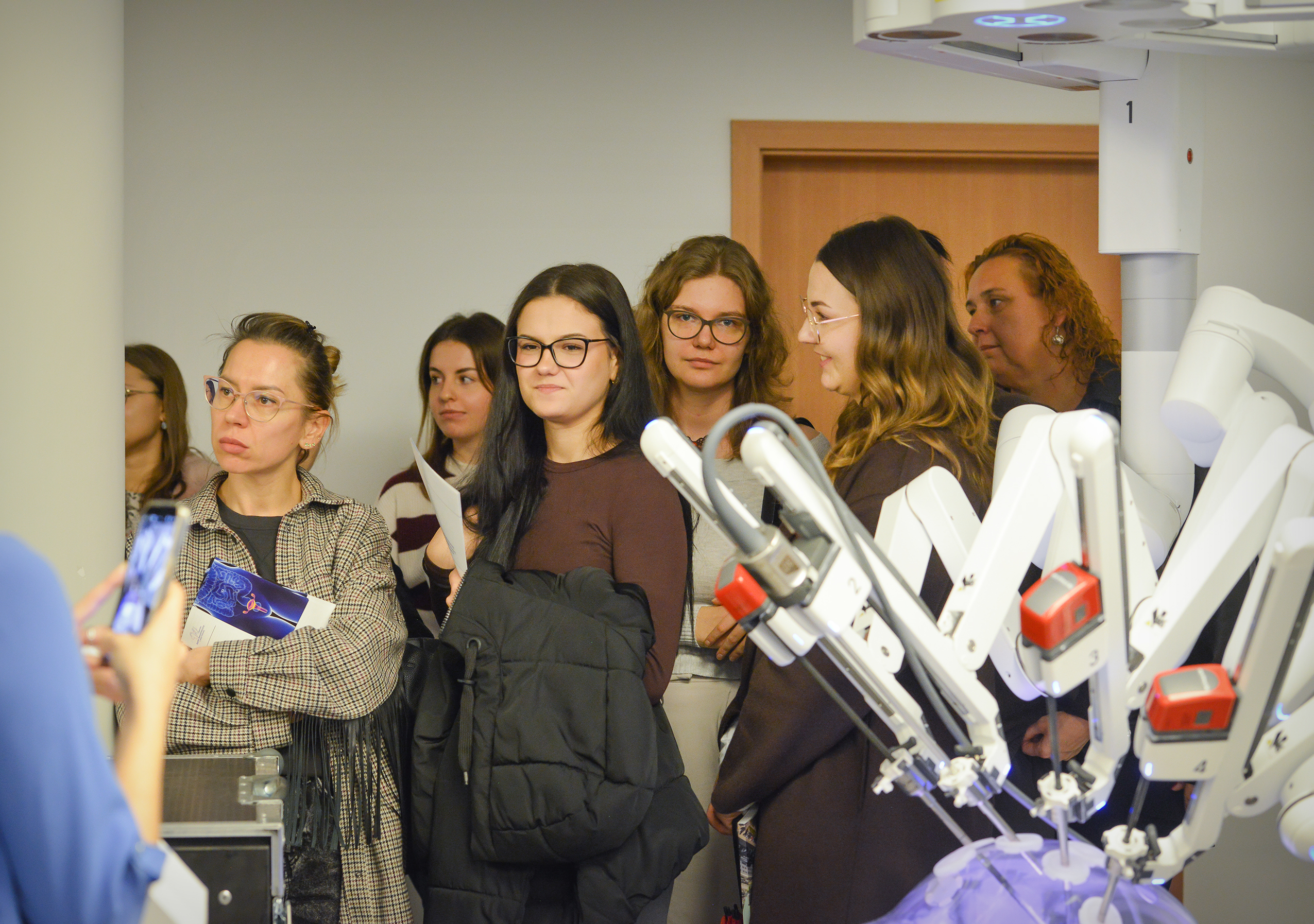 Wszyscy uczestnicy mogli zobaczyć również na żywo, jak wygląda praca robota da Vinci. Zaprezentowano budowę urządzenia, omówiono elementy systemu oraz wykonano pokazowe, precyzyjne ruchy ramion robota na symulatorze.