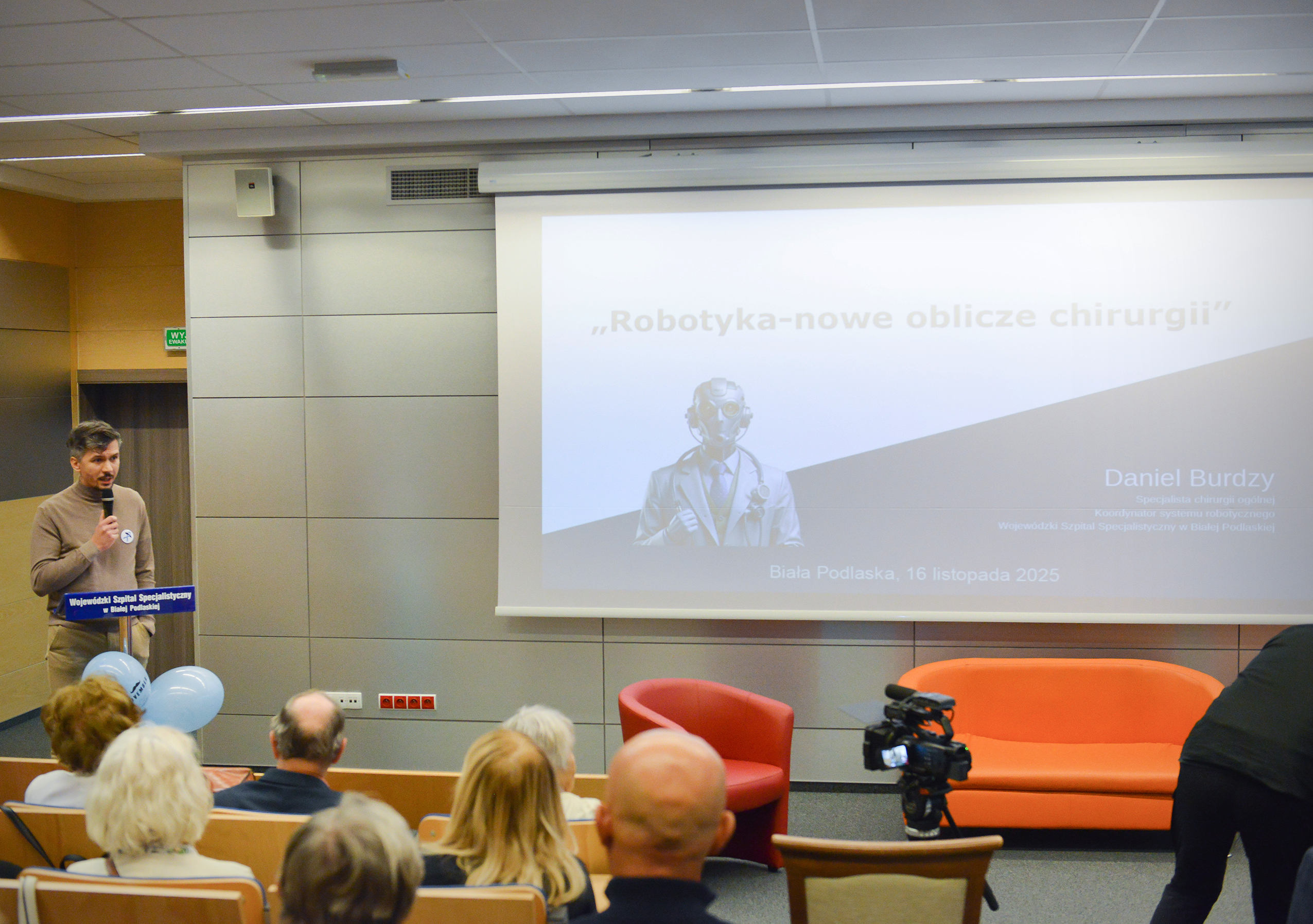 Podczas wydarzenia uczestnicy wysłuchali wykładu edukacyjnego „Robot da Vinci – nowoczesna chirurgia w Wojewódzkim Szpitalu Specjalistycznym w Białej Podlaskiej”, który poprowadził lek. Daniel Burdzy, chirurg, koordynator w zakresie wdrażania i realizacji projektu robotyka operacyjna w Wojewódzkim Szpitalu Specjalistycznym w Białej Podlaskiej. Podczas prezentacji wyjaśnił m.in.: jak działa robot da Vinci, jakiego rodzaju operacje wykonuje się z jego użyciem, jakie korzyści płyną z chirurgii robotycznej zarówno dla pacjenta, jak i dla lekarza.