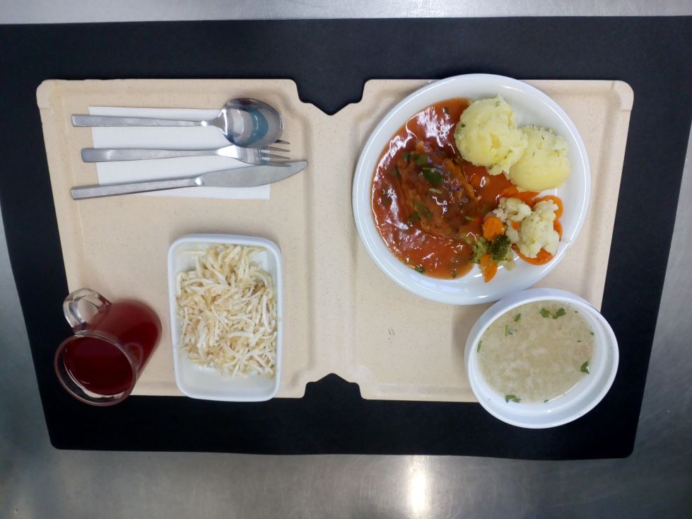 Dieta podstawowa I zestaw Barszcz biały z ziemniakami # 350 g(GLU, MLE, SEL) Ziemniaki z koperkiem # 180 g Gołąbki bez zawijania z kapustą pieczone100 g (JAJ) Sos pomidorowy 80 ml ( GLU, MLE) Surówka z selera i jabłka z olejem # 150 g (SEL) Bukiet warzyw gotowanych (marchew,kalafior, brokuł) 100 g Kompot owocowy z cukrem 250 ml |