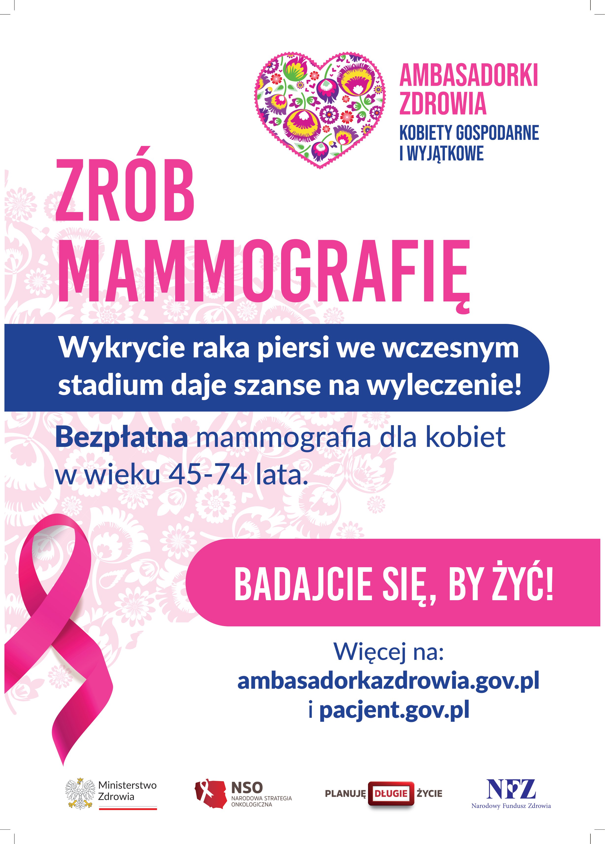 W związku z programem zapraszamy na bezpłatne badania mammograficzne kobiety w wieku 45 - 74 lat (ważny jest rok urodzenia), które: